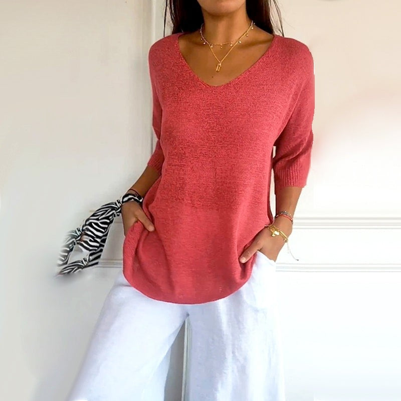 Anjela – Lässiges Strickhemd Mit V-Ausschnitt
