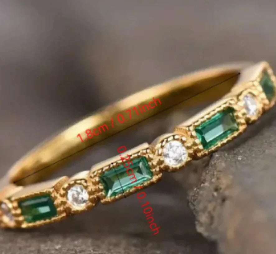 - Material: Premium durable metal with a polished gold finish and inlaid green zirconia.
