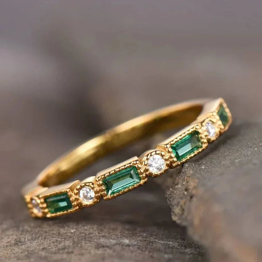 Ashlyn - Vintage Green Inlaid Zirconia Gold Ring