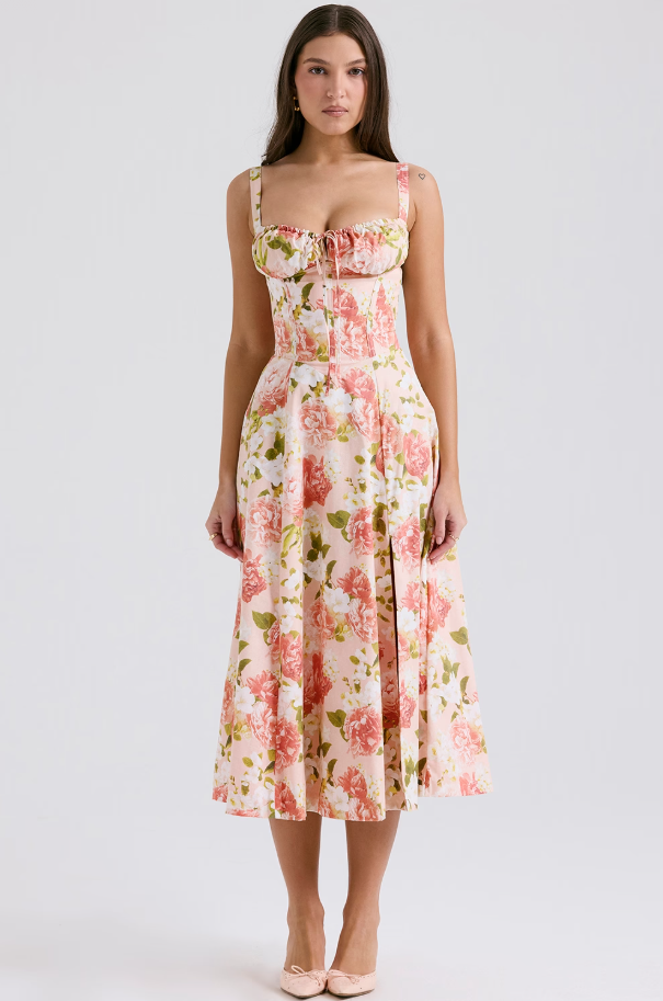 Umarmen Sie zeitlose Eleganz mit dem Aurora Lace-Up Midi Dress