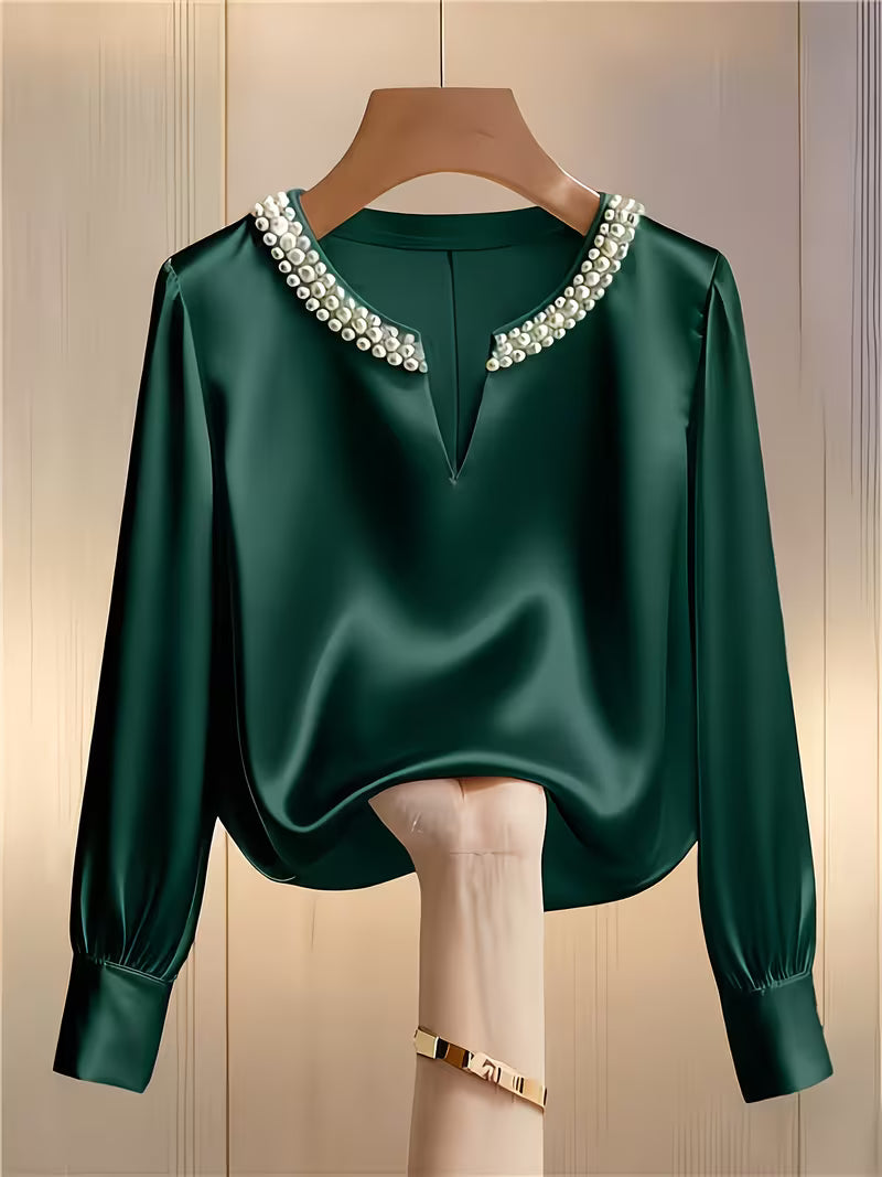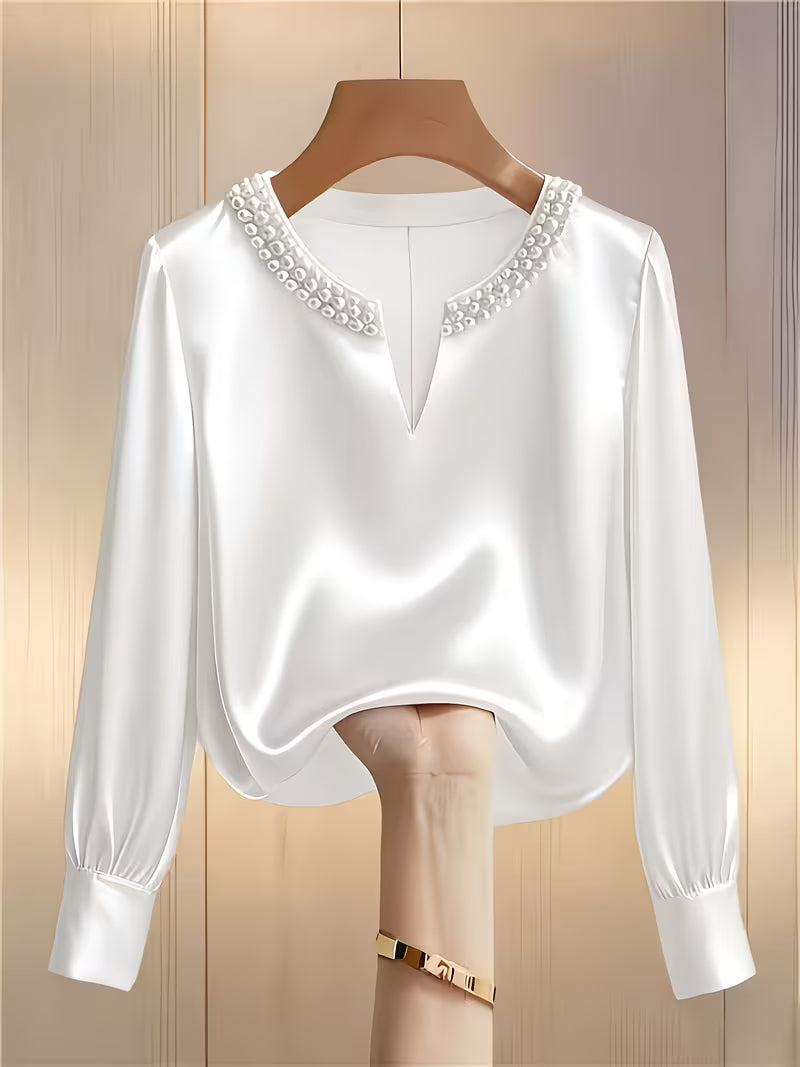 Elegantes Langarm-Perlenhemd für die Arbeit und besondere Anlässe!