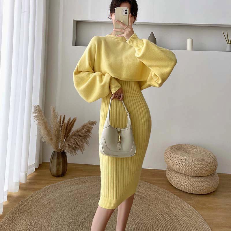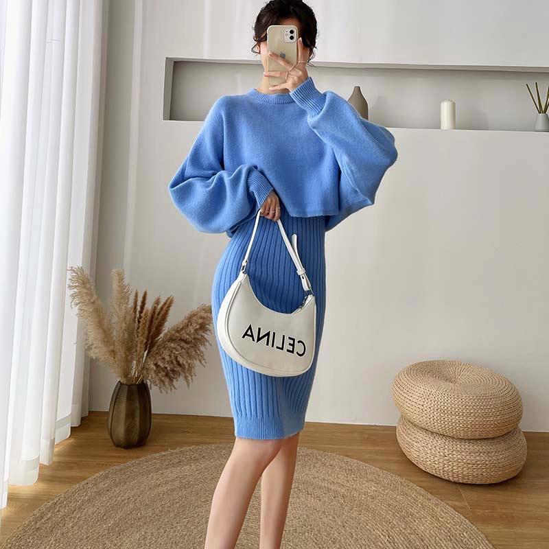 Modisches Set aus Strickkleid und Sweatshirt für Herbst/Winter