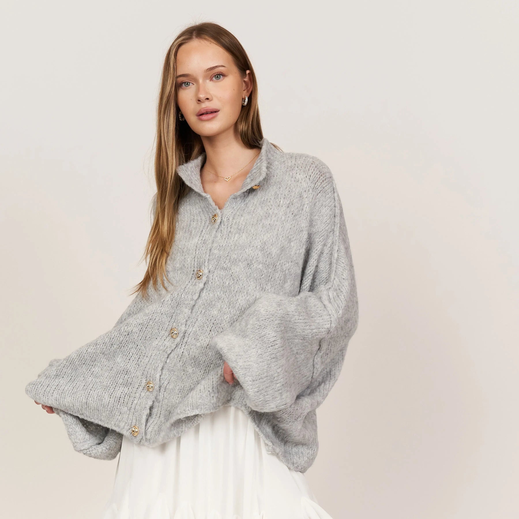 Bella | Übergroße Strick-Cardigan mit Goldknöpfen