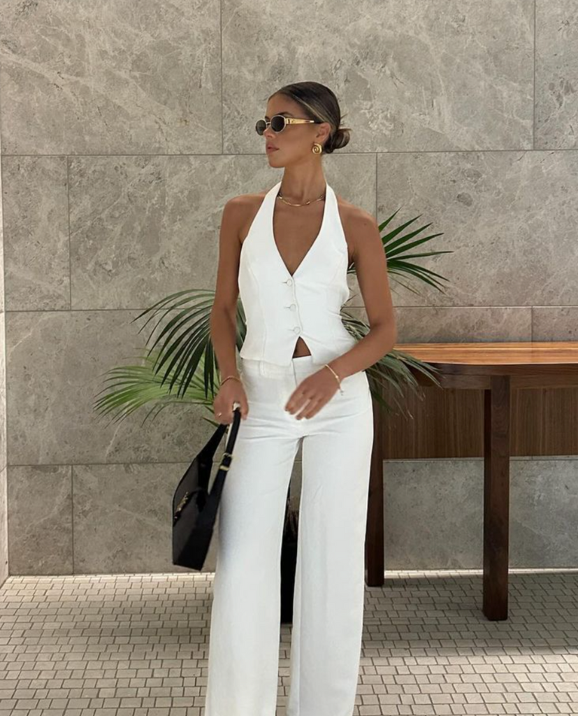 Elegant. Feminin. Unvergesslich. Das Belle™ Halterneck-Gilet ist ein Statement-Piece, das Stil und Raffinesse nahtlos vereint. Mit seinem tiefen Halsausschnitt, der figurbetonten Silhouette und dem verspielten Schleifendetail am Rücken bringt es deine Kurven optimal zur Geltung – ohne auf Komfort zu verzichten. Ob bei einem Dinner-Date oder einem lässigen City-Tag – dieses Top zieht Blicke auf sich, ohne laut zu sein.
