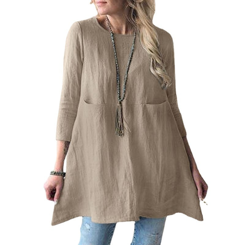 Dieses wunderschöne Kleid vereint ein ansprechendes Design mit optimalem Tragekomfort. Hergestellt aus einer hochwertigen Baumwoll-Leinen-Mischung, ist es ideal für die modebewusste Frau, die sowohl Stil als auch Alltagstauglichkeit schätzt. Mit seinem zeitlosen Vintage-Stil und dem A-Linien-Schnitt passt es zu verschiedenen Anlässen, sei es im Büro oder bei einem entspannten Treffen mit Freunden.