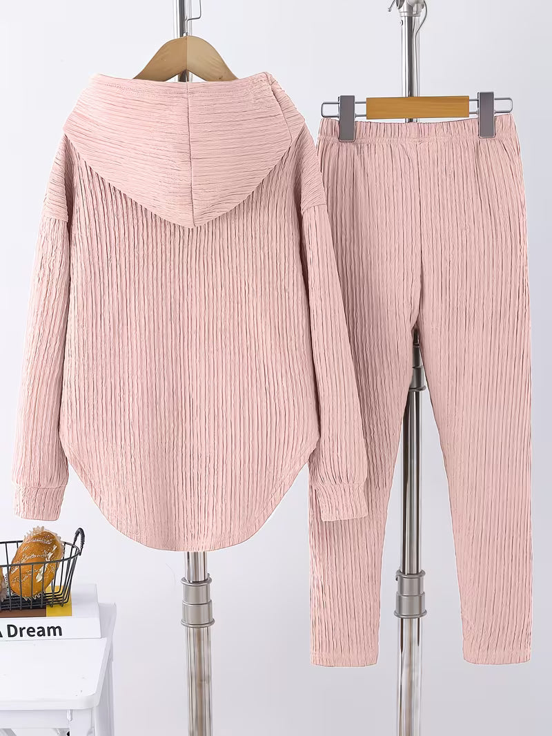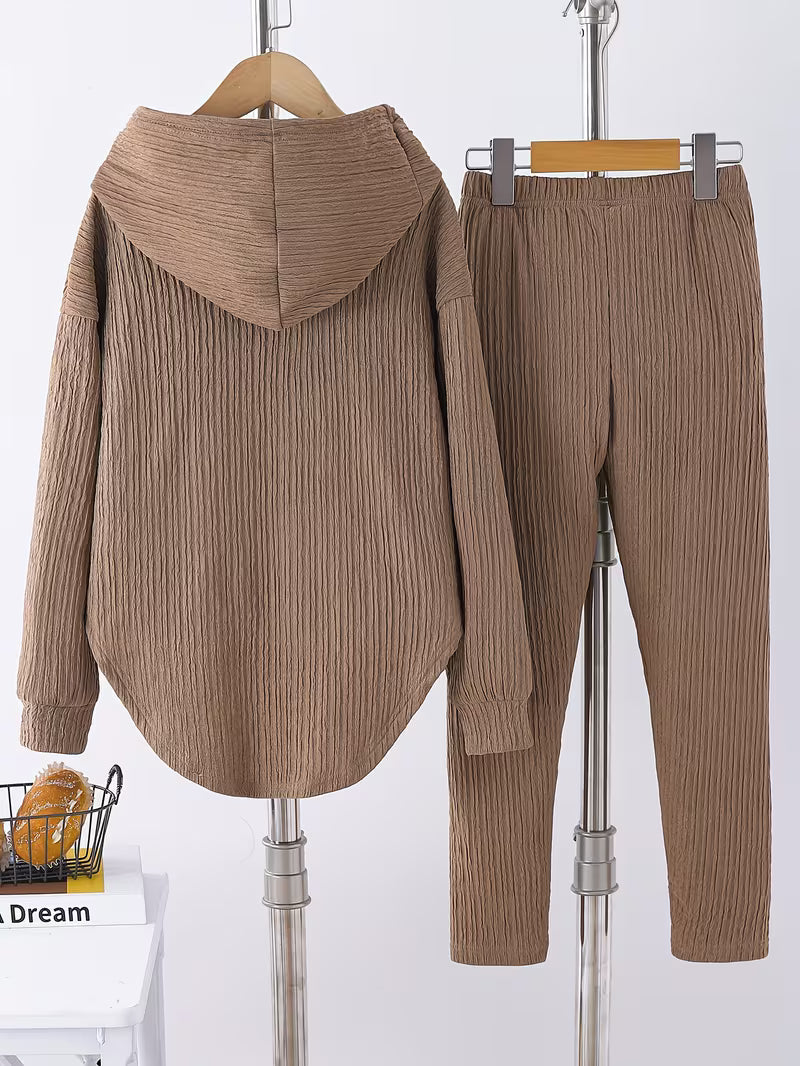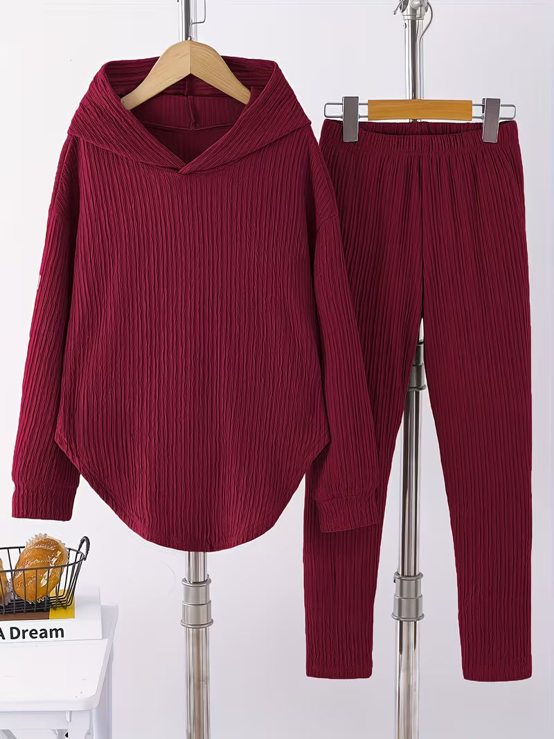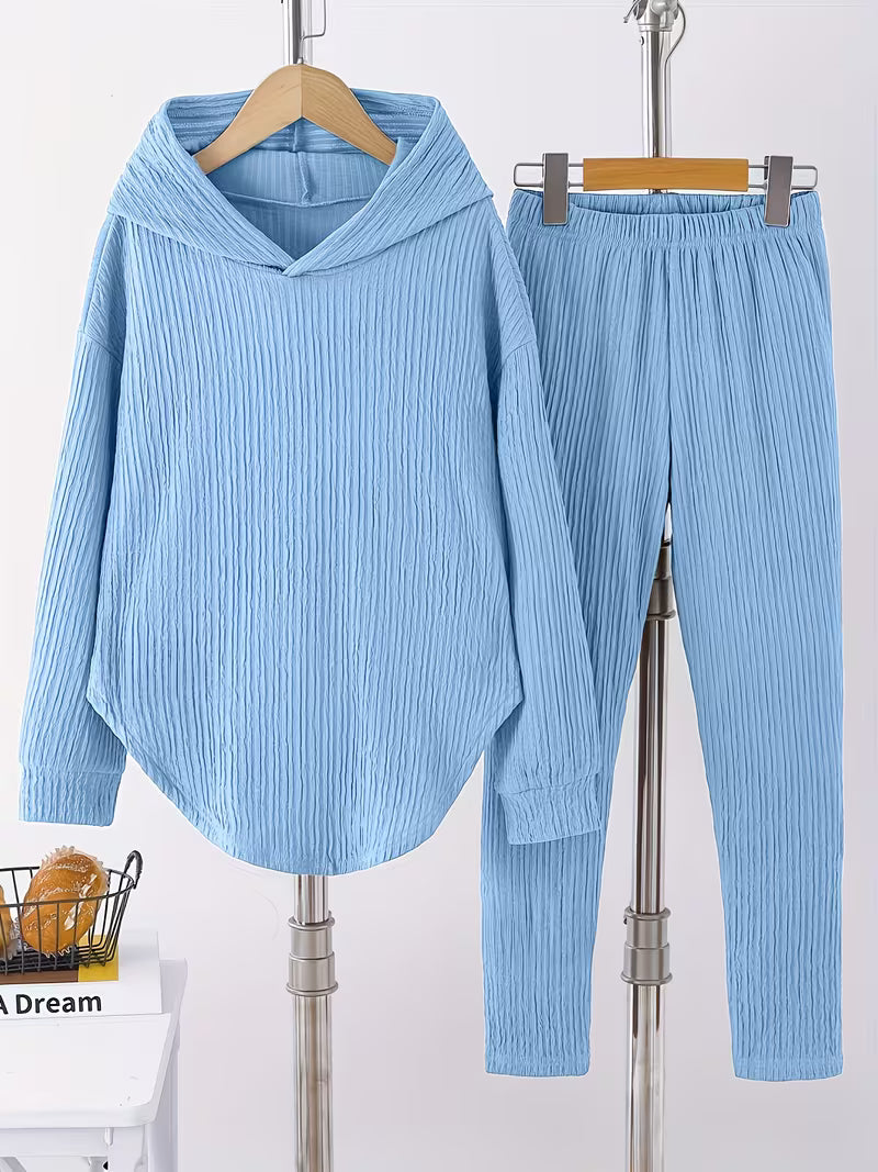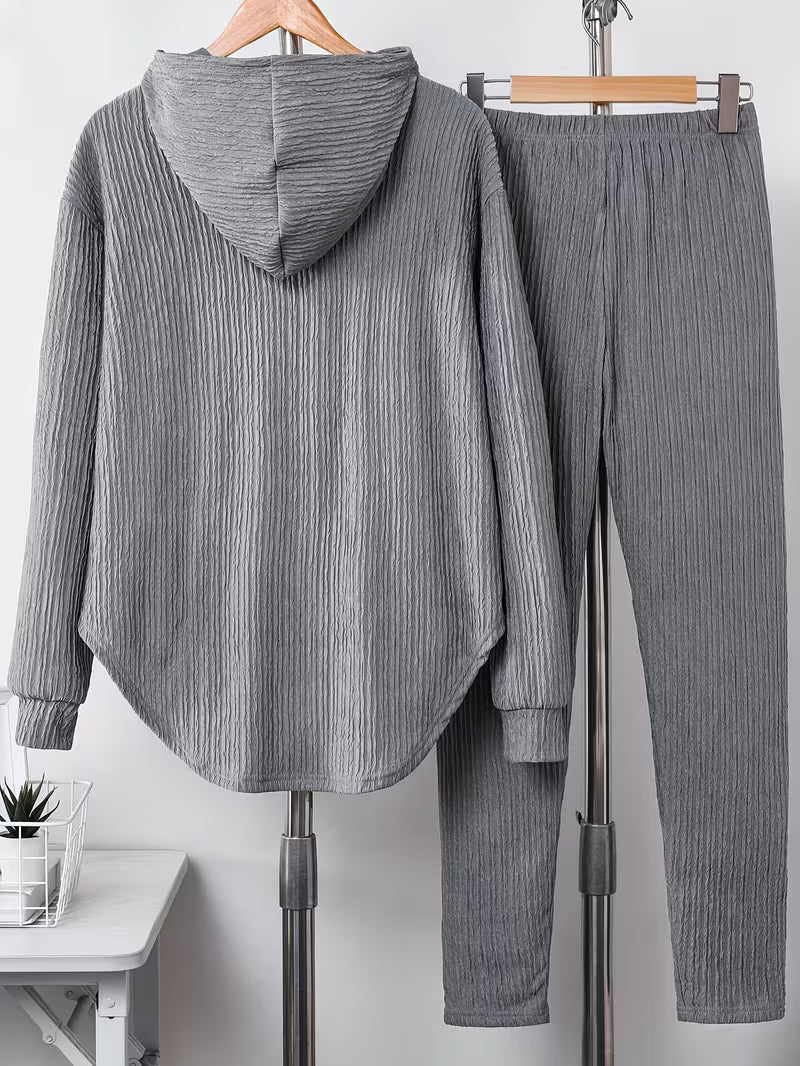 ✅Ausgewogene, entspannte Passform: Das gesamte Set ist so konzipiert, dass es sich bequem anfühlt, ohne übergroß oder formlos zu wirken. Das Oberteil fällt locker, während die Leggings für eine schlanke Silhouette sorgen. Diese Balance schafft eine schmeichelhafte Form, die Selbstvertrauen und Leichtigkeit vermittelt.