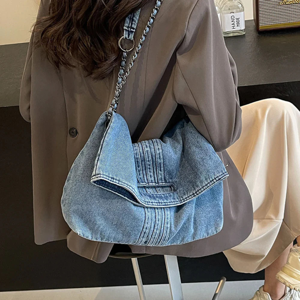 Die BILLY-Tasche vereint Stil und Funktionalität. Hergestellt aus strapazierfähigem Denim mit weichem Polyesterfutter, bietet sie viel Platz für deine Essentials. Dank verstellbarer Trageoptionen kannst du sie bequem in der Hand oder über der Schulter tragen – perfekt für jeden Anlass.