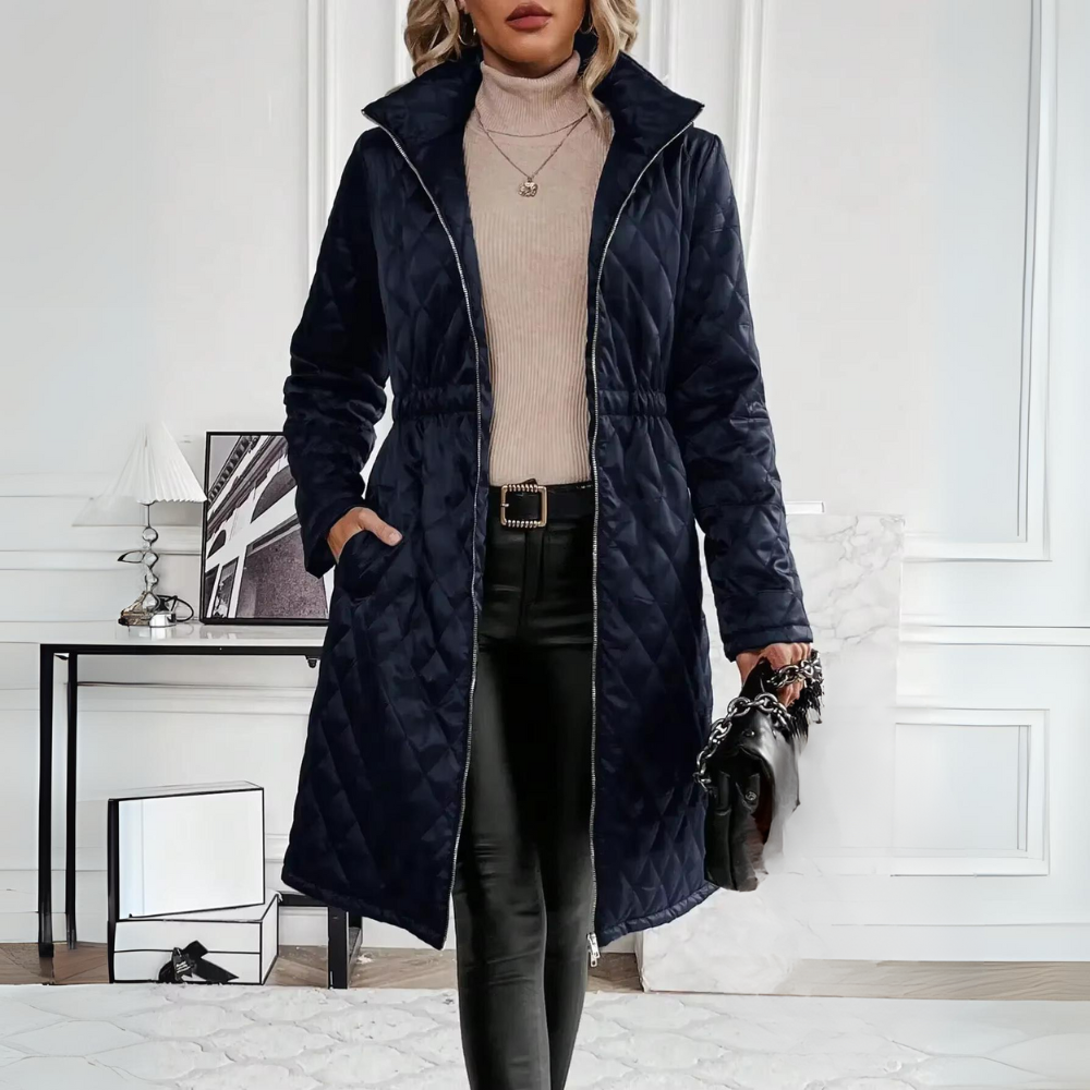 Erhöhen Sie Ihre Garderobe mit unserem Chic Quilted Long Coat, einer perfekten Mischung aus Stil und Komfort. Dieser Mantel präsentiert ein modernes Steppdesign, das nicht nur Wärme bietet, sondern jedem Outfit einen Hauch von Eleganz verleiht.