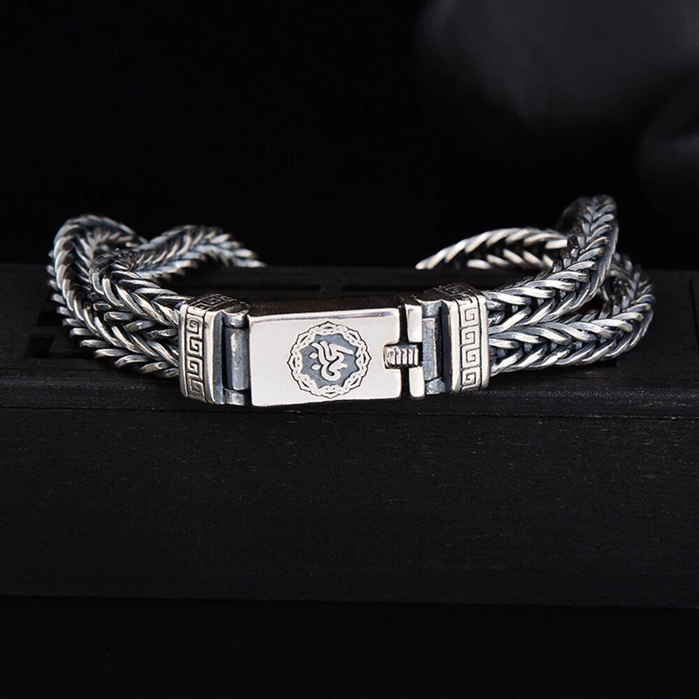 Hochwertige Handwerkskunst, die Sie spüren können: Jedes Glied ist sorgfältig miteinander verwoben, um eine glatte und dennoch kraftvolle Struktur um das Handgelenk zu schaffen. Das Gewicht und die Balance sorgen für ein selbstbewusstes, hochwertiges Gefühl, das sofort auffällt. Die präzise Verarbeitung gewährleistet Komfort und bewahrt gleichzeitig eine starke, maskuline Präsenz. Dieses Armband spiegelt die Liebe zum Detail von Anfang bis Ende wider.