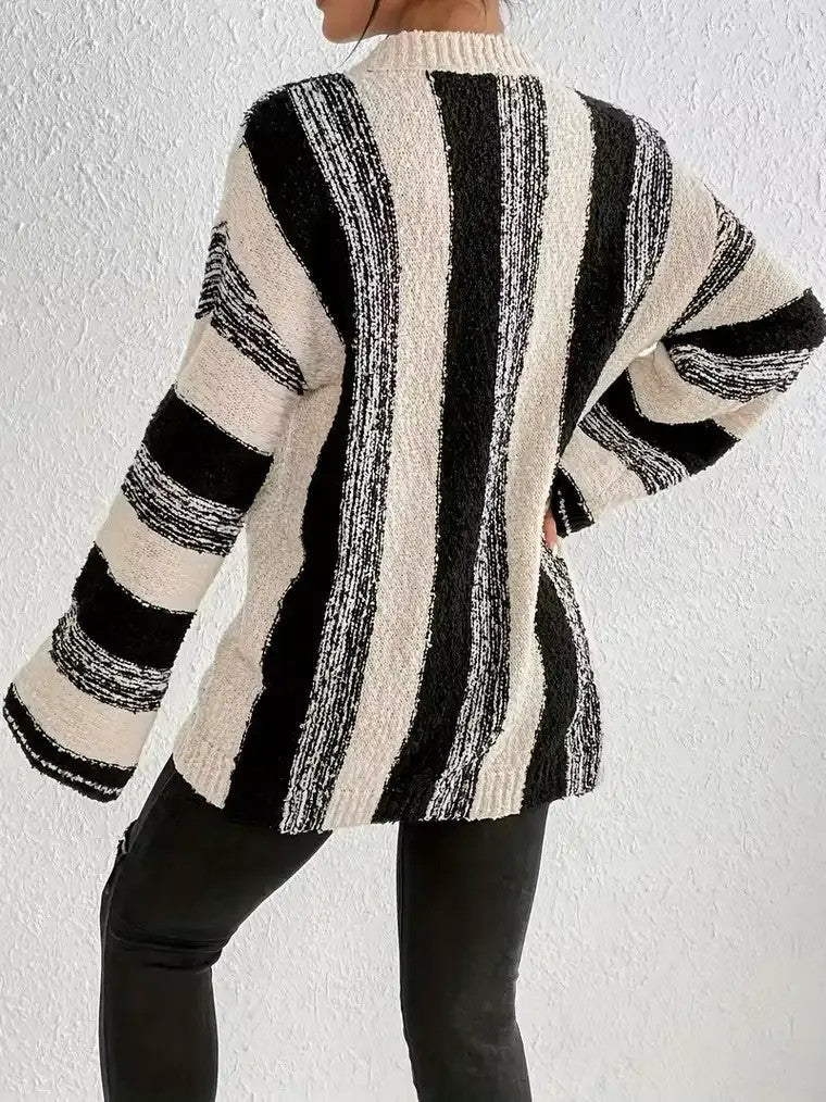 Damen-Pullover mit Rundhalsausschnitt und vertikalen Streifen