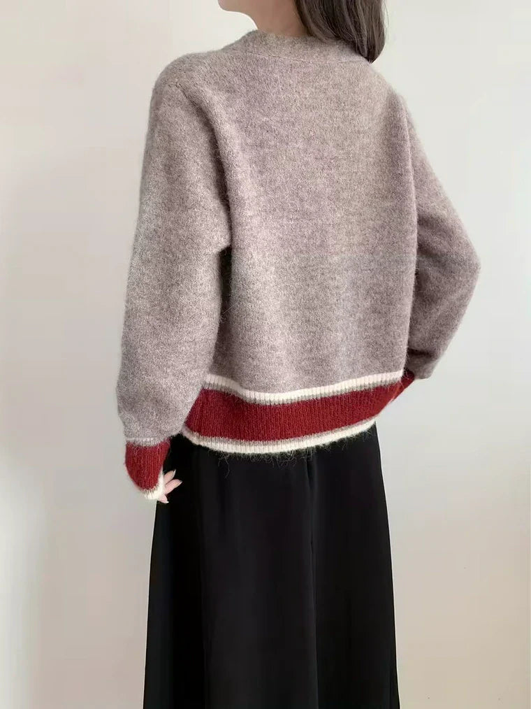 Damen Strickjacke mit Streifenbesatz und Knöpfen