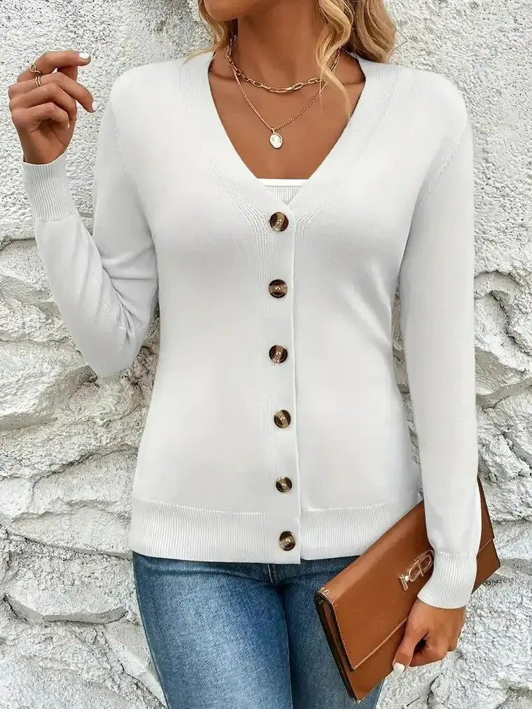 Damen-Strickjacke mit V-Ausschnitt und Knopfleiste