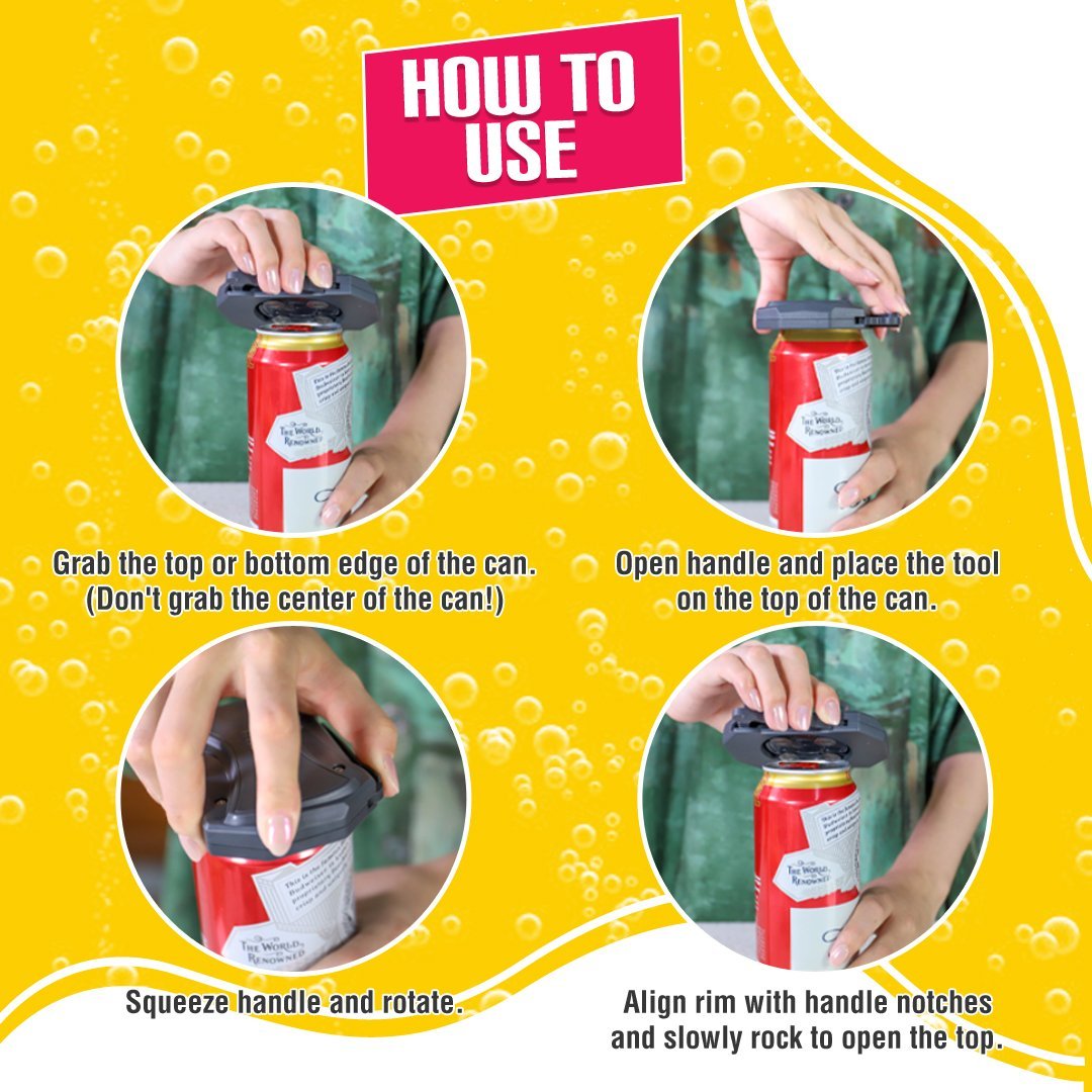 • Keine scharfen Kanten - Entfernt den Deckel jeder Dose sanft und hinterlässt keine scharfen Kanten. Du kannst sicher aus der Dose trinken, ohne dich zu verletzen.