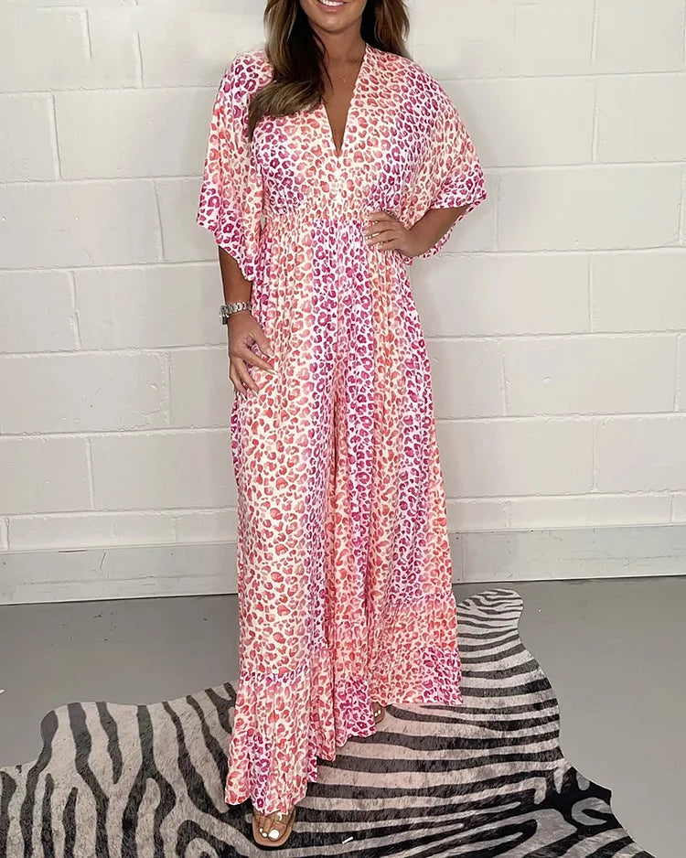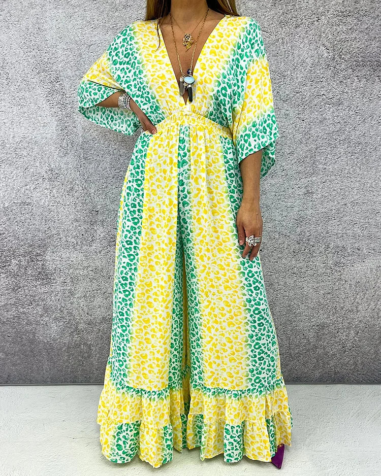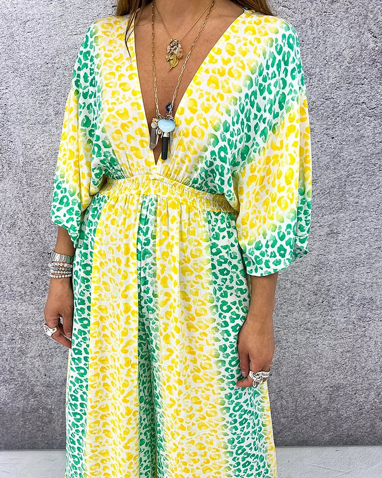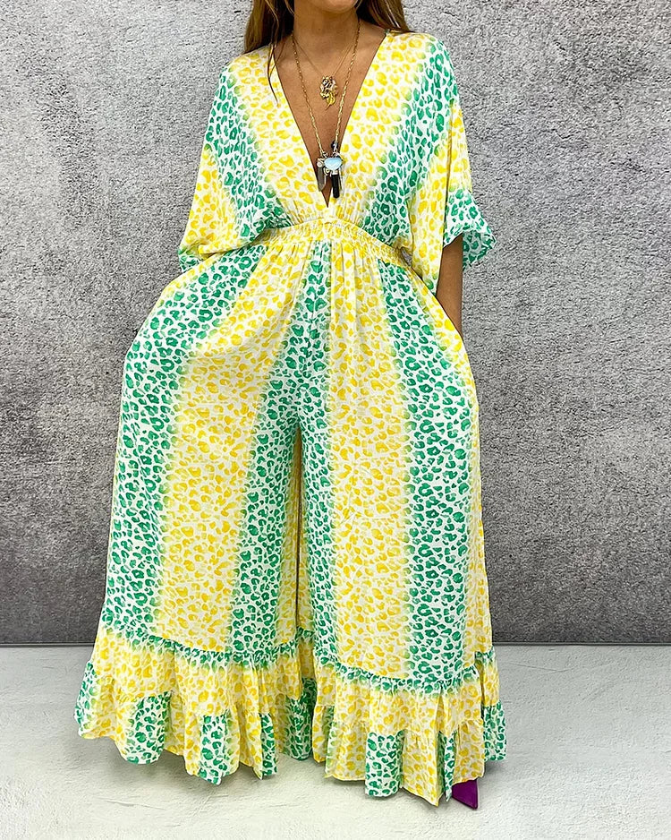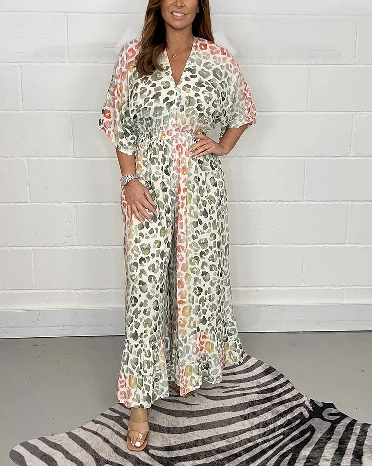 Tauche ein in die Welt des urbanen Dschungels mit unserem Elara™ | V-Ausschnitt Leopard Weite Bein Hose Jumpsuit. Dieser trendige Jumpsuit verkörpert Stil und Komfort zugleich, perfekt für selbstbewusste Frauen, die ihre Individualität gerne zeigen.