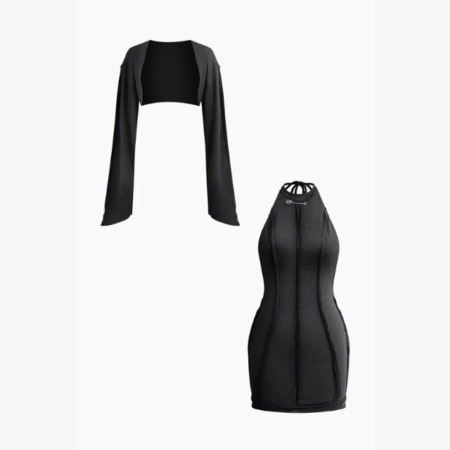 Dieses stilvolle Set aus einem Bolero mit langen Ärmeln und einem enganliegenden Kleid mit Schnürung bietet Ihnen die Möglichkeit, sich in jeder Situation wohlzufühlen. Ideal für modebewusste Frauen, die sowohl Eleganz als auch Funktionalität schätzen, lässt es sich perfekt zu verschiedenen Anlässen kombinieren. Der Bolero bringt eine moderne Note, während das Kleid Ihre Silhouette gekonnt in Szene setzt.