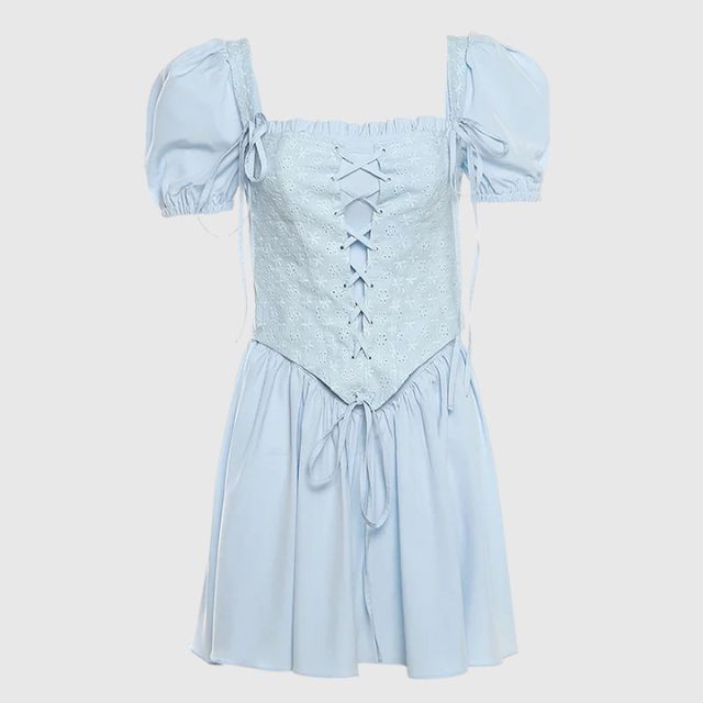 Eleganter Heidi -Schnür-Corsagen-Romper mit Puffärmeln