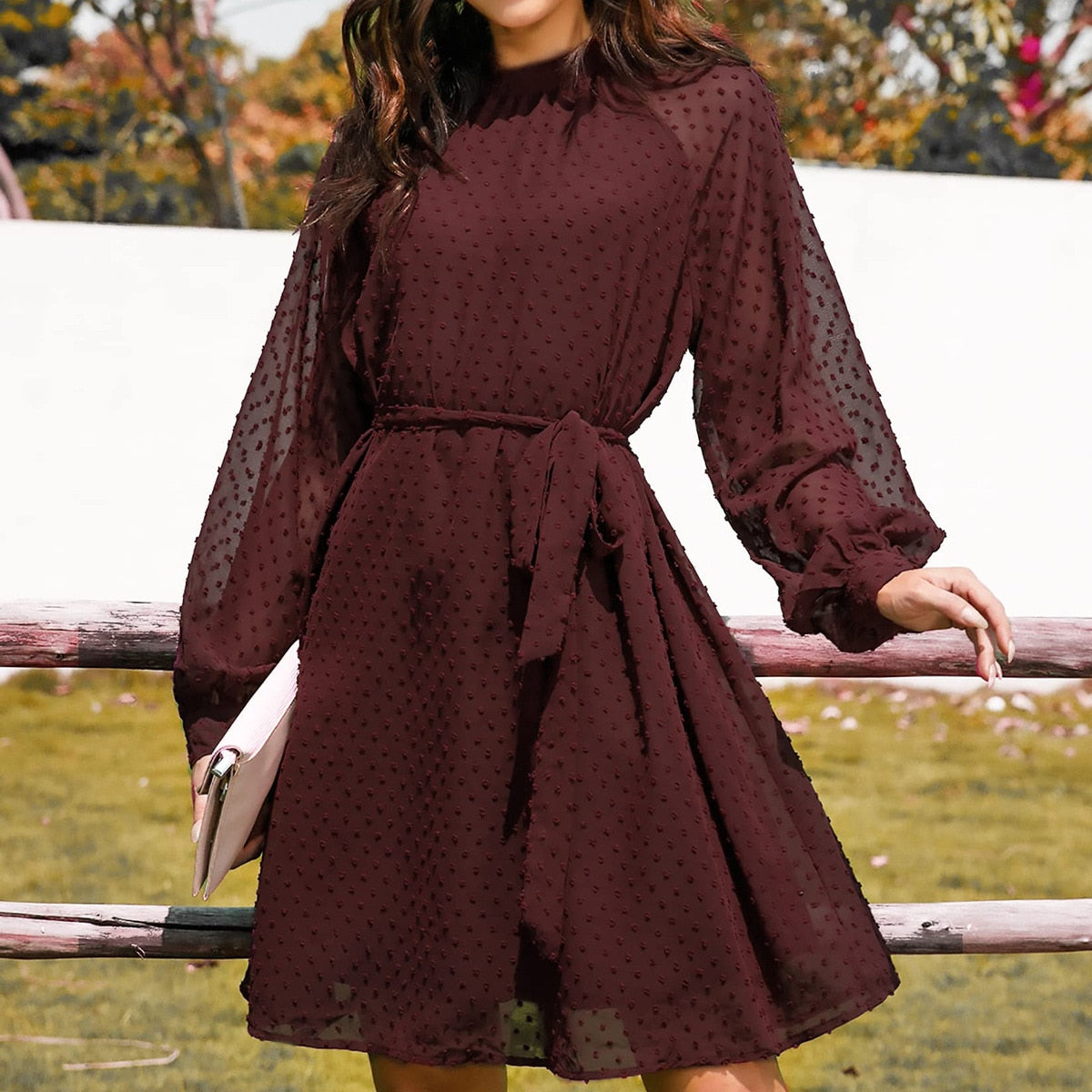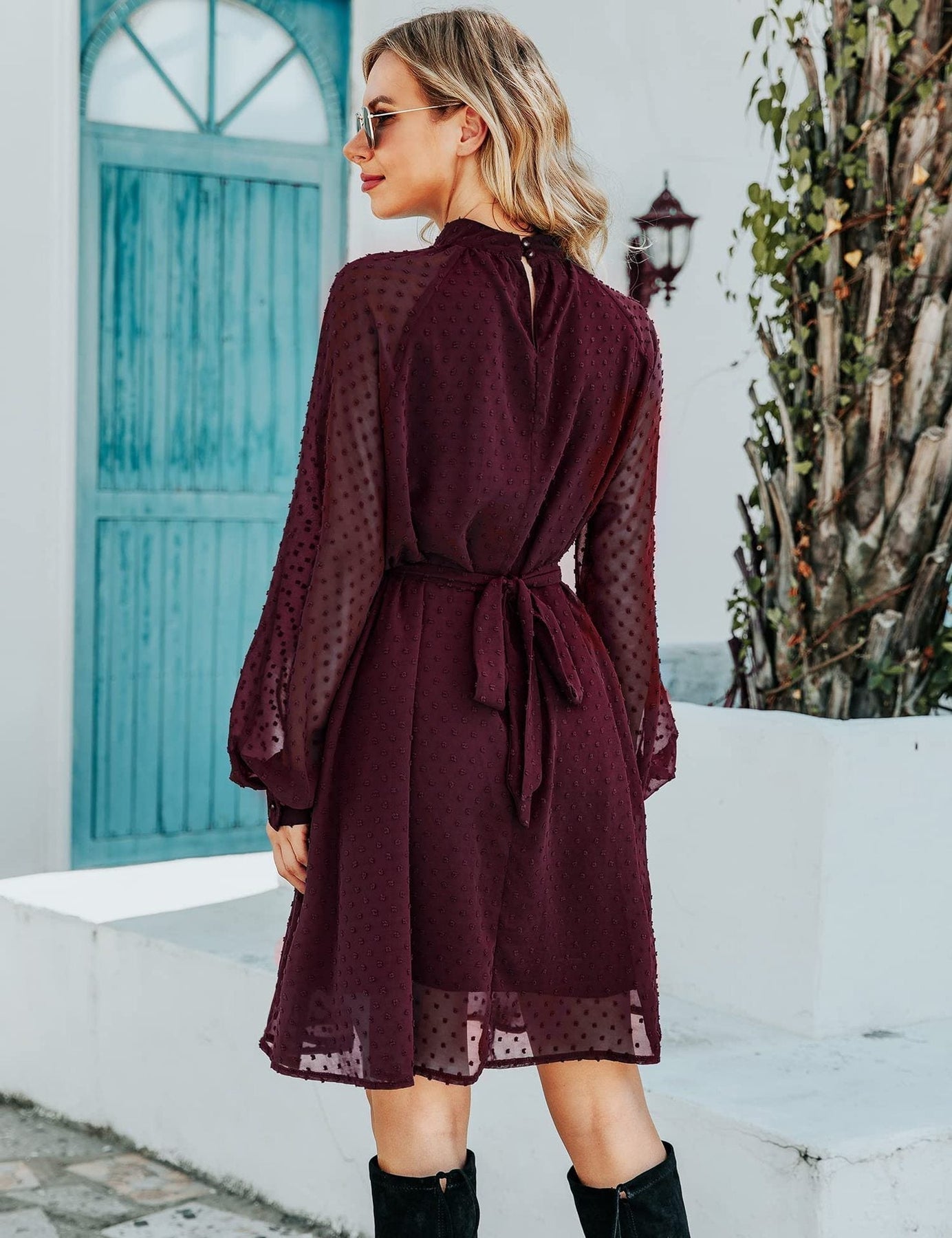 Elegantes - Dunkelrotes Kleid mit Polka Dots für dich
