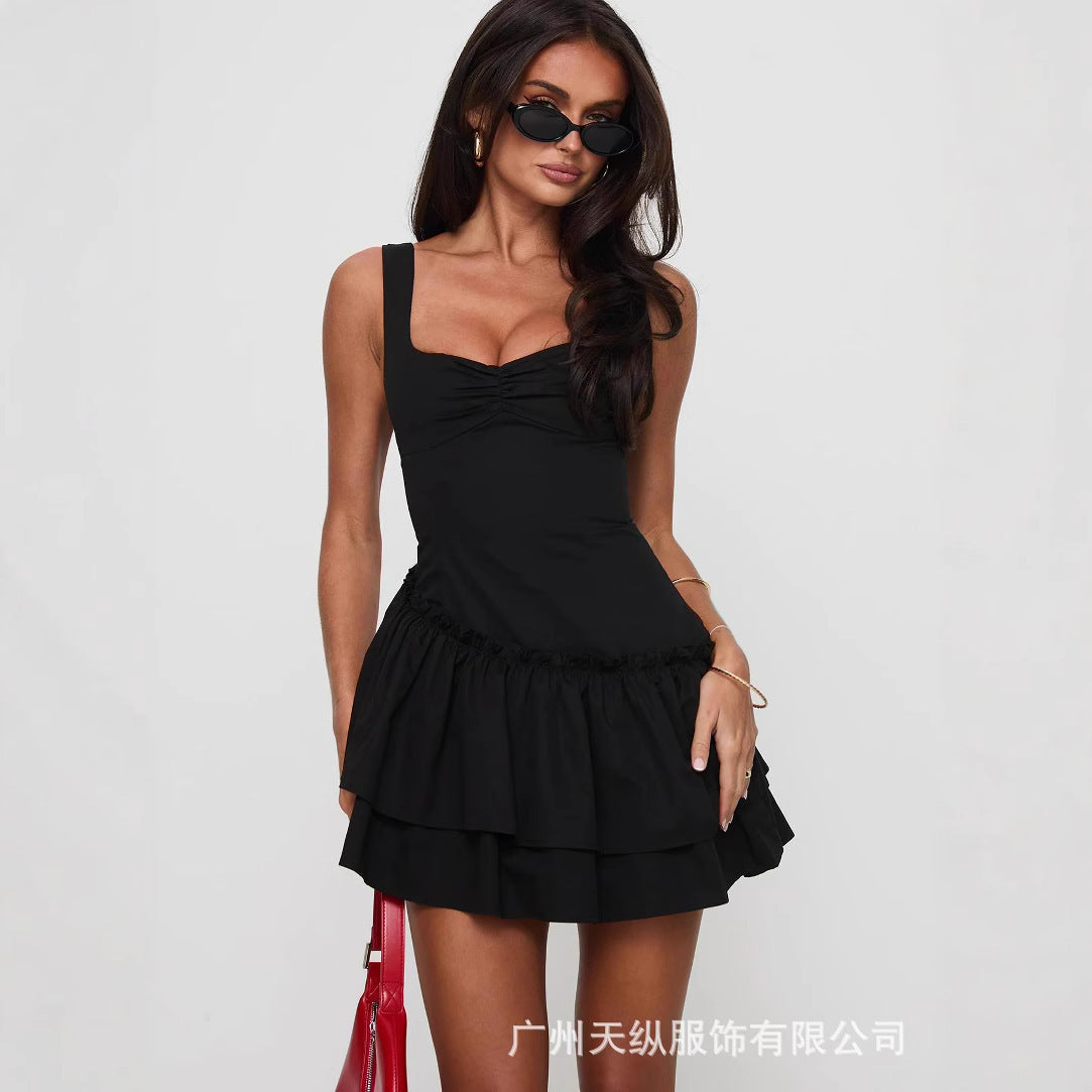 Dieses wunderschöne Kleid kombiniert Stil und Komfort auf perfekte Weise. Es ist ein vielseitiges Kleidungsstück, das für verschiedene Anlässe geeignet ist, sei es eine Party, ein Abendessen oder ein festliches Event. Die Träger und der quadratische Ausschnitt verleihen dem Kleid einen modernen Touch, während der Faltenbust für eine schmeichelhafte Silhouette sorgt.