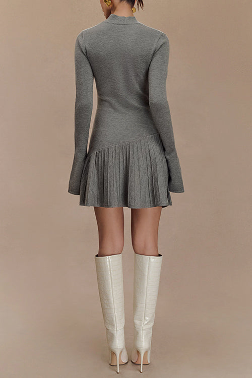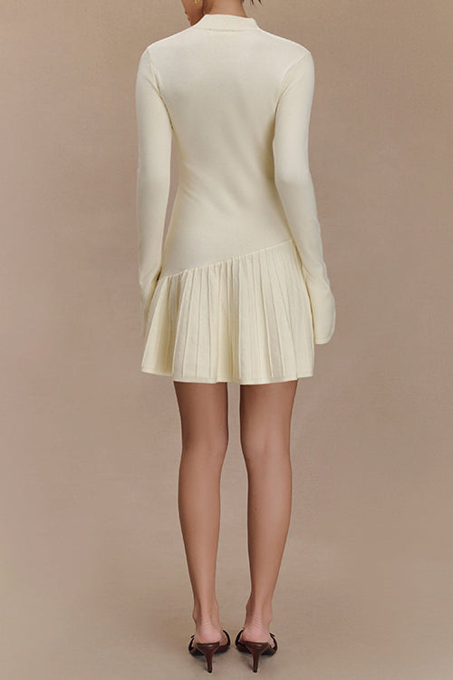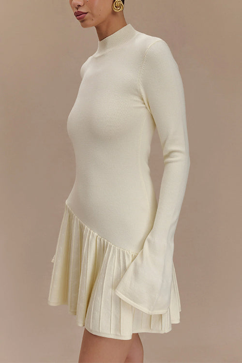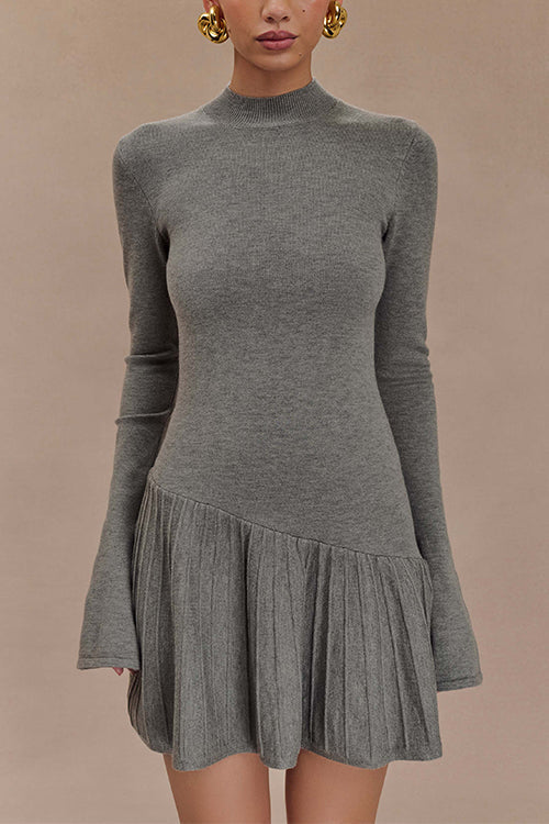 Dieses Mini-Sweaterkleid vereint Komfort und modisches Design auf einzigartige Weise. Mit einem eleganten Stehkragen und romantischen Glockenärmeln mit Rüschendetails ist es die ideale Wahl für kühlere Tage. Dieses Kleid eignet sich hervorragend für verschiedene Anlässe, von lässigen Treffen bis hin zu festlichen Anlässen. Es ist ein Must-have für jede modebewusste Frau.