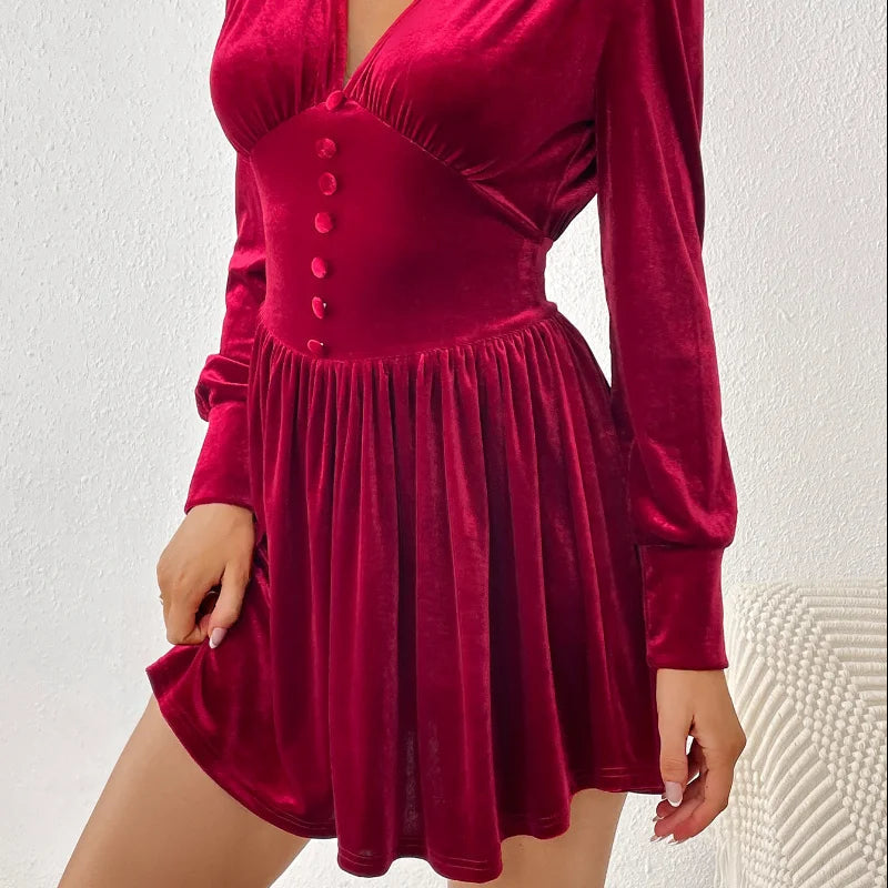 Elegantes Heidi -Samt-Minikleid mit V-Ausschnitt