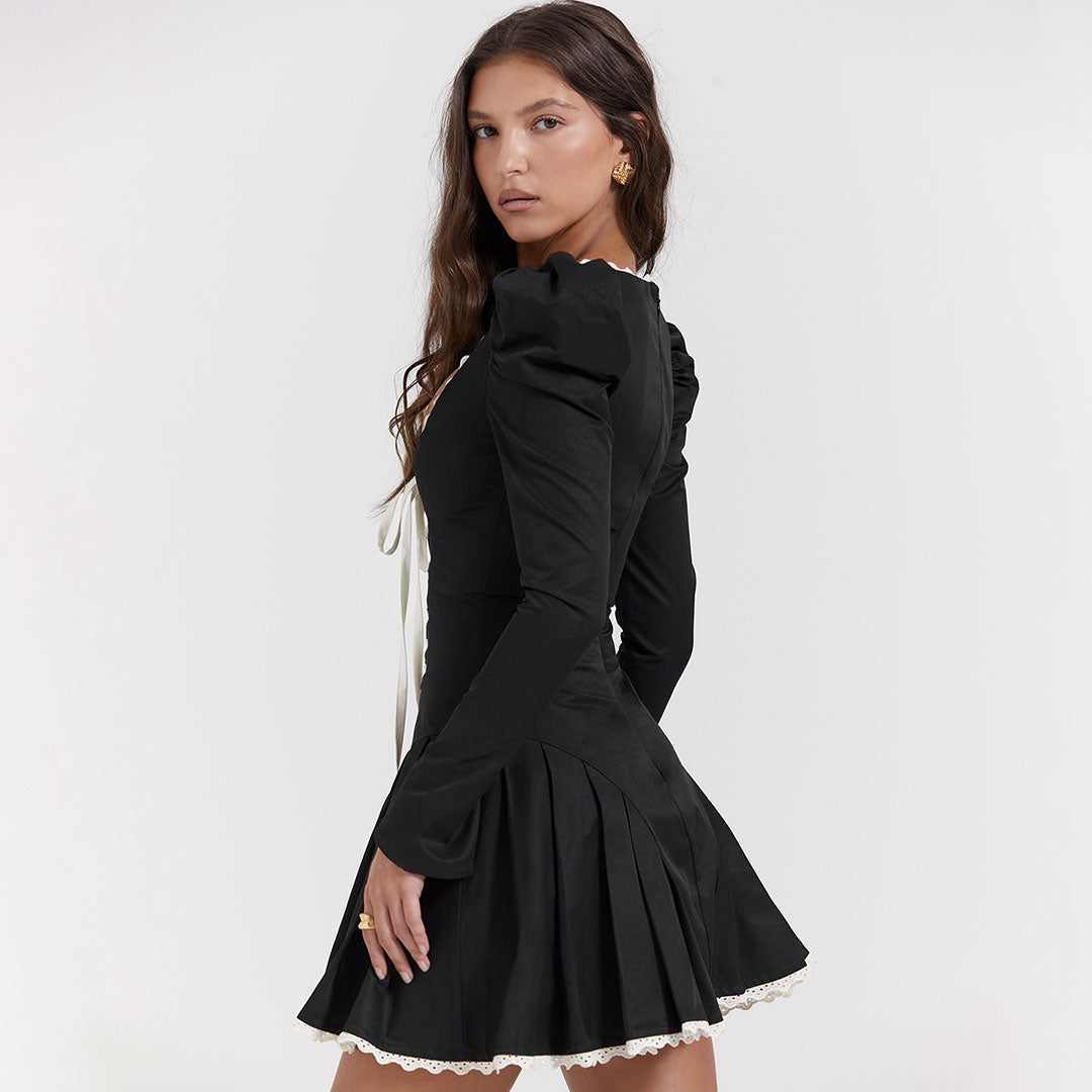 Elegantes Heidi -Schnür-Minikleid mit Puffärmeln