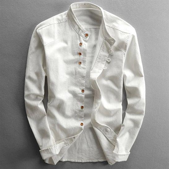 Elegantes Herrenhemd mit Stehkragen und modischer Knopfleiste – Stilvolle Langarmbluse für moderne Outfits
