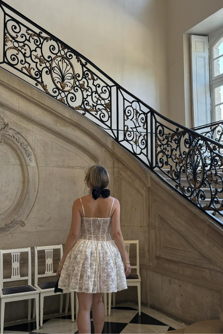 Du schließt den Reißverschluss, richtest die Schleife in der Mitte und fühlst dich sofort selbstbewusster. Das Elina™ Mini-Spitzenkleid umhüllt deine Figur mit zarter Spitze und einer perfekt strukturierten Passform. Ob romantisches Dinner, Cocktailabend oder besondere Anlässe – dieses Kleid macht aus jedem Moment ein Highlight.