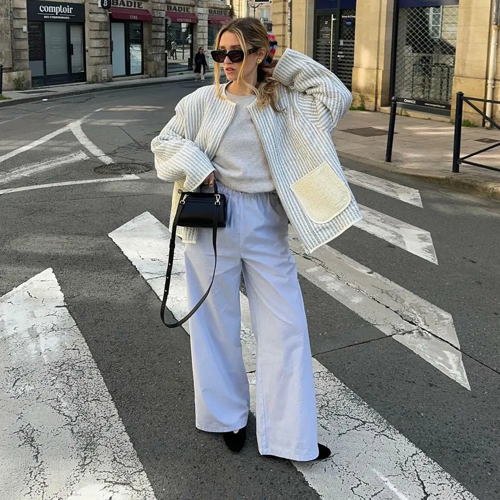 Bewältige kalte Tage mit Leichtigkeit in diesem leichten gepolsterten Layer, der alltägliche Funktionalität mit einem unverwechselbaren Stil kombiniert. Die oversized Silhouette bietet eine entspannte Eleganz, während die großen Taschen praktische Nützlichkeit mit modernem Charme vereinen. Hergestellt aus einem weichen und gemütlichen Stoff, hält sie dich warm, ohne zusätzliches Volumen hinzuzufügen. Ob du zu einem Brunch gehst oder shoppen gehst, diese Jacke vervollständigt deinen Look mit einem Hauch von natürlicher Eleganz.