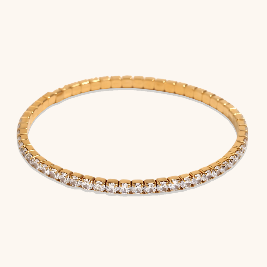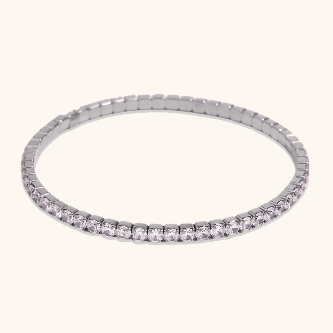 Ein elegantes Armband mit einer Reihe funkelnder Steine. Raffiniert und angenehm zu tragen, verleiht es jedem Look genau das richtige Maß an Glanz – ideal zum Kombinieren oder solo getragen.