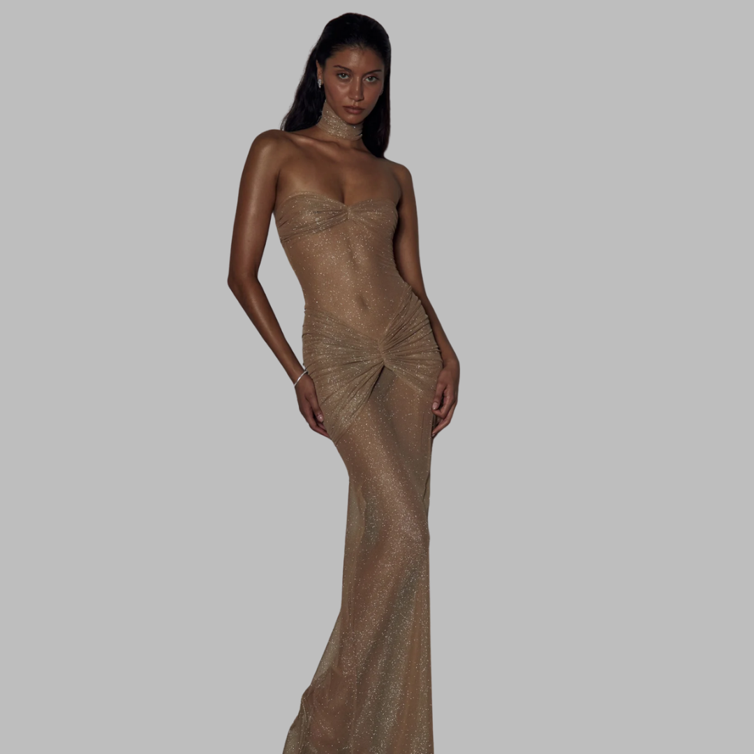 Erleben Sie unvergleichliche Eleganz mit dem Hadewara Classic Sheer Gown. Dieses Kleid vereint zarte Transparenz und luxuriösen Schnitt und ist die perfekte Wahl für besondere Anlässe, bei denen Sie glänzen möchten.