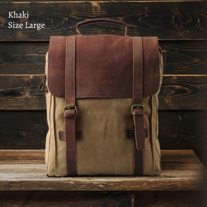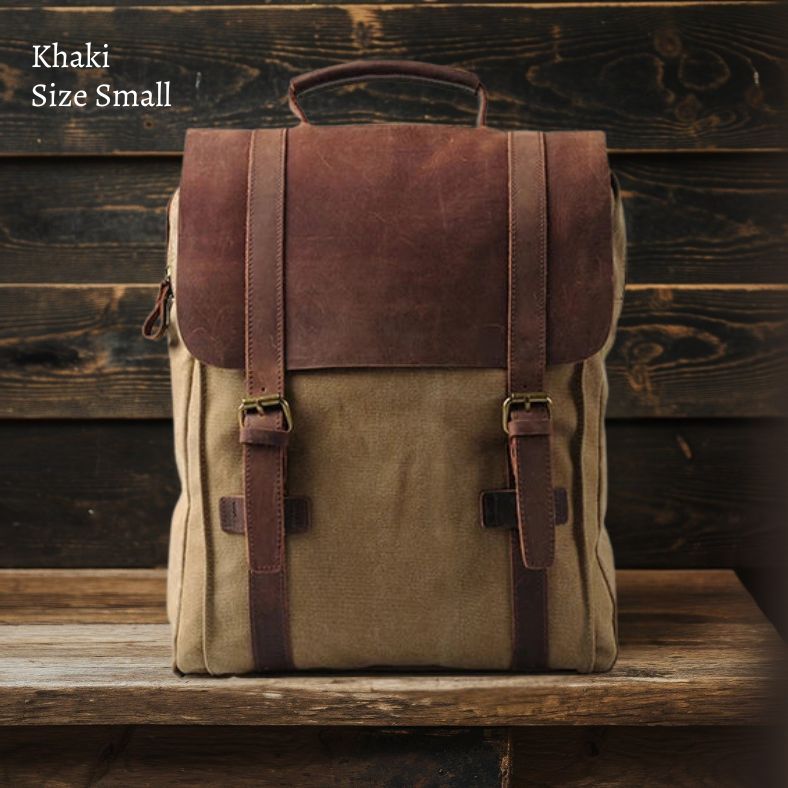 Vintage-Mode Herren-Rucksack, Lederrucksack im Militärstil, Canvas-Rucksack, Rucksack für Herren und Damen, Schulrucksack.