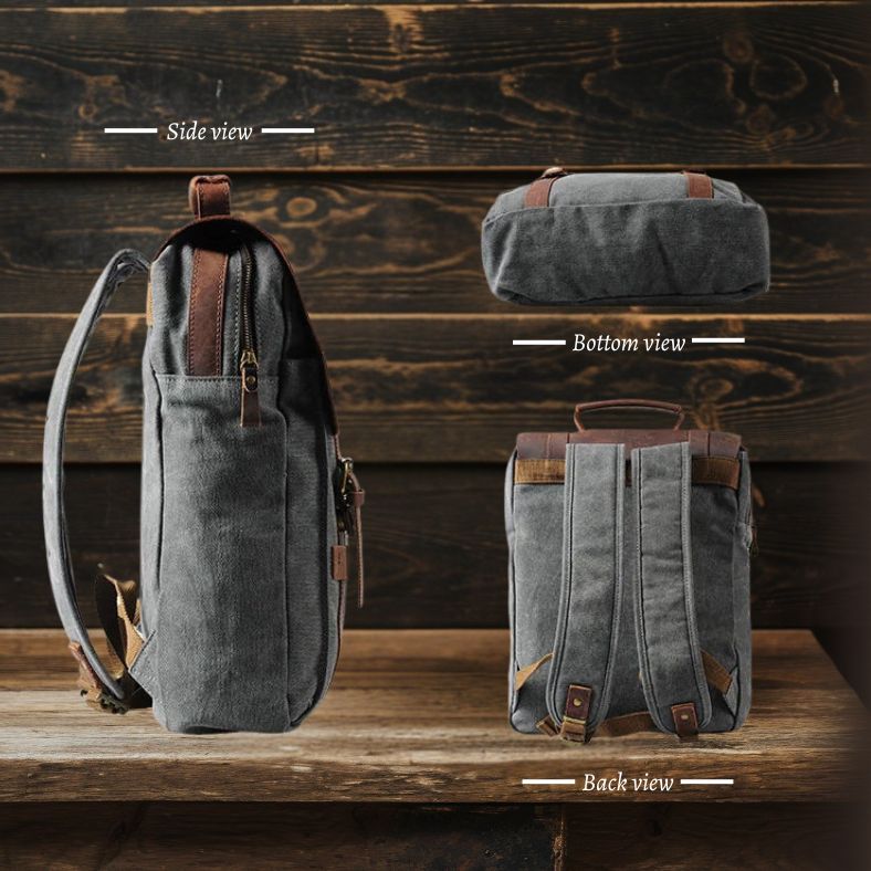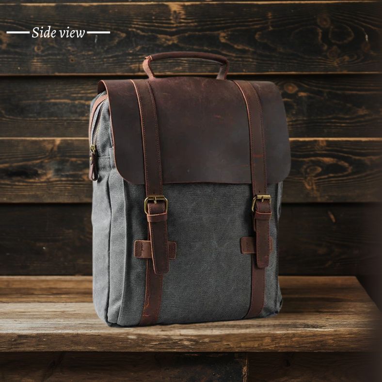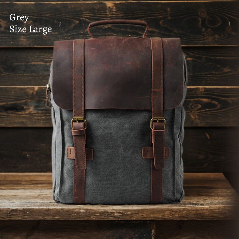 Grauer Leder-Canvas-Schulrucksack