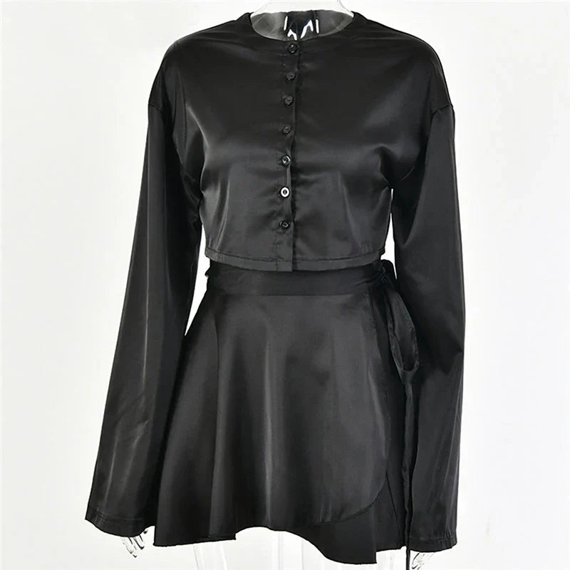 Dieses schicke Blusen- und Rock-Set mit Bindegürtel ist die ideale Wahl für modebewusste Frauen, die sowohl Komfort als auch Stil schätzen. Es bietet eine mühelose Eleganz, die sich für verschiedene Anlässe eignet, sei es im Büro, beim Ausgehen oder bei festlichen Veranstaltungen. Die Kombination aus einer fließenden Bluse und einem schmeichelhaften Minirock macht dieses Set zum Must-Have in jeder Garderobe.
