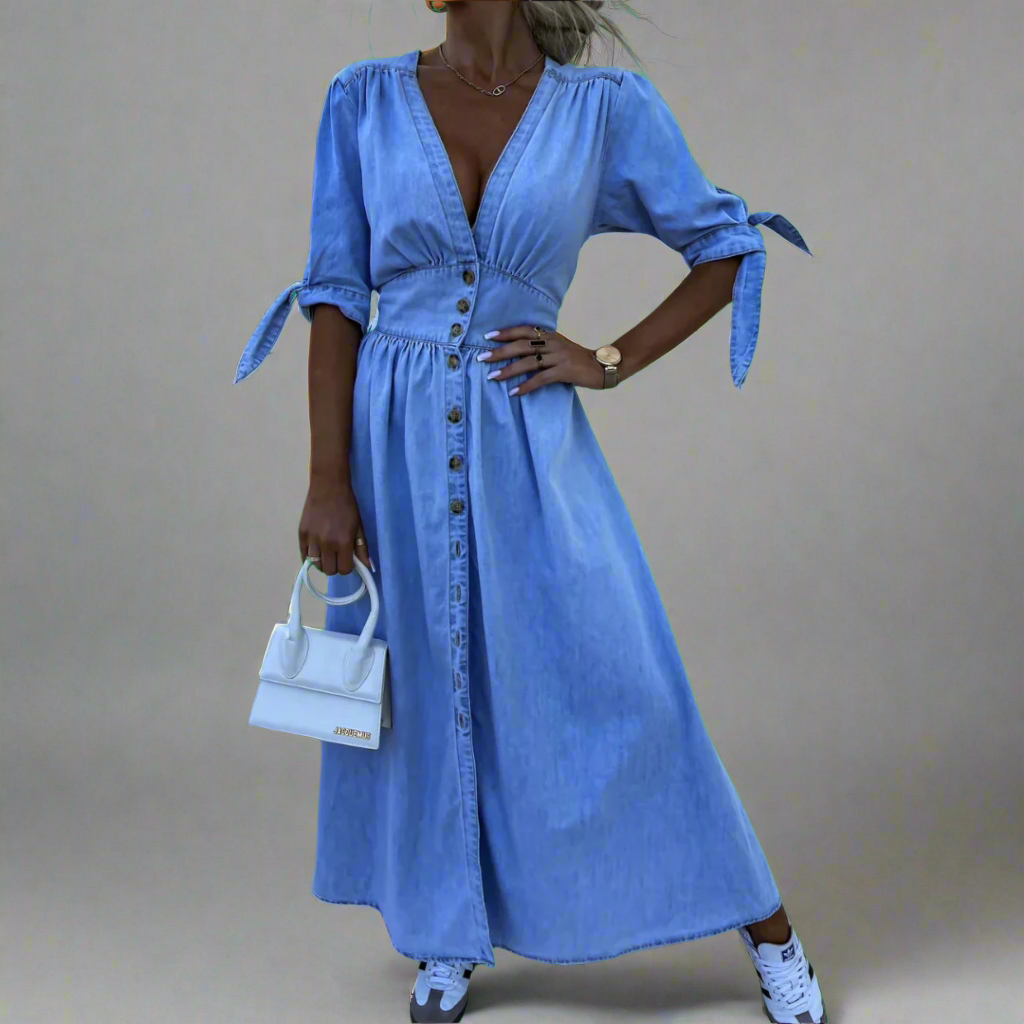 Entdecke den ultimativen Komfort und Stil mit unserem Herlinde Midikleid, das perfekt für jede Frau ist, die Eleganz und Funktionalität kombinieren möchte. Ideal für jede Gelegenheit, von Sommerausflügen bis zu besonderen Anlässen – es sorgt dafür, dass du den ganzen Tag bequem und stilvoll bleibst.