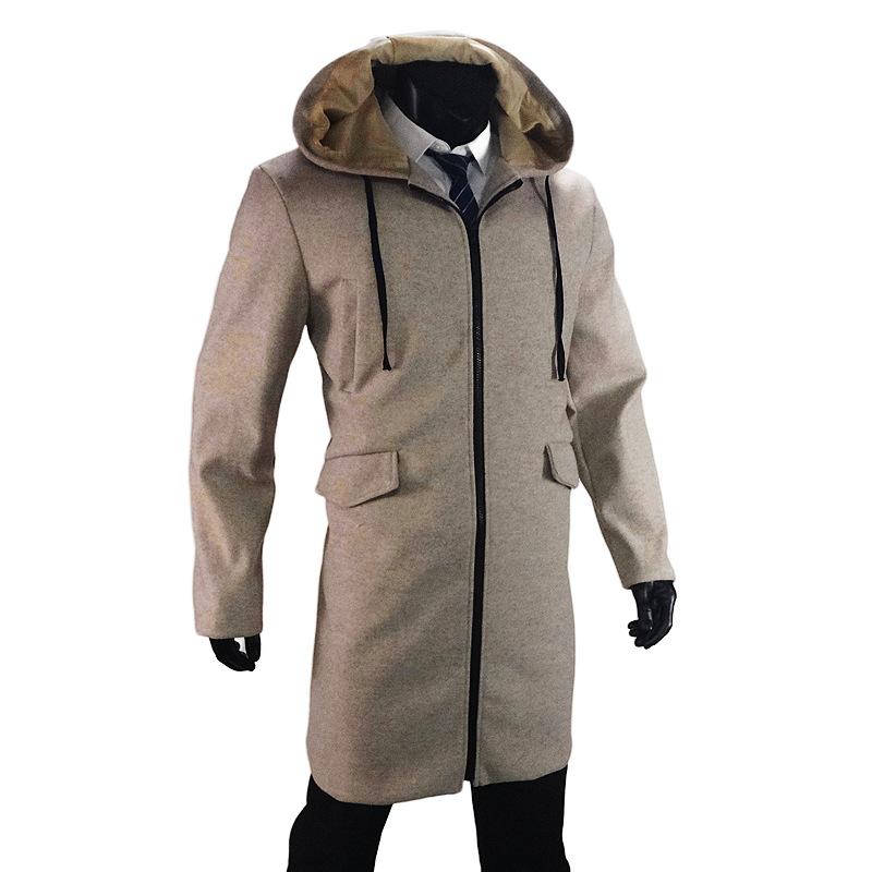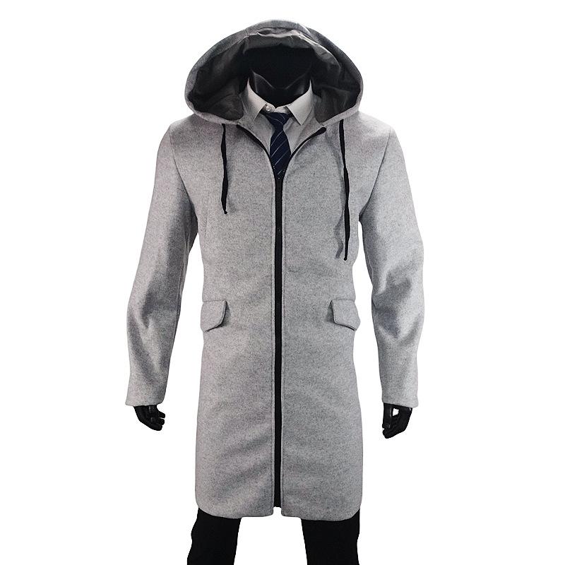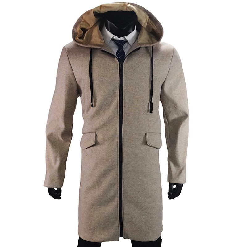 Herren-Mantel in mittellanger Länge mit Kapuze und Spitze