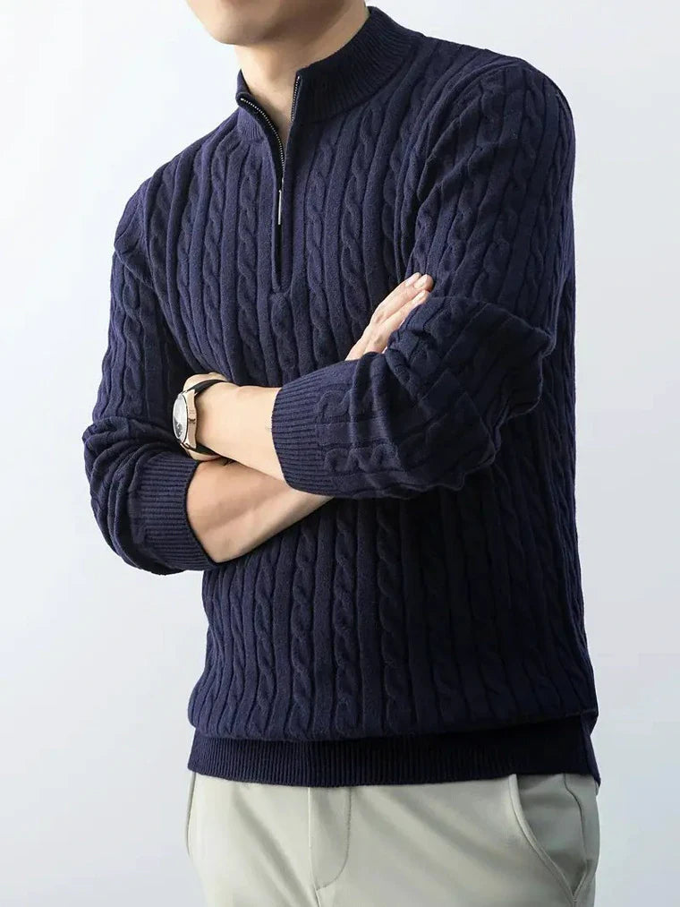 Herren Zopfmuster-Strickpullover Mit Reißverschlusskragen
