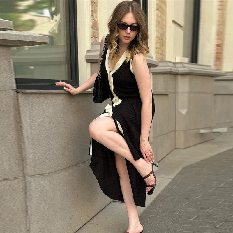 Vielseitiger Stil: Der V-Ausschnitt und die figurbetonte Silhouette verleihen eine feminine Note und betonen den einzigartigen Charme des Kleides.