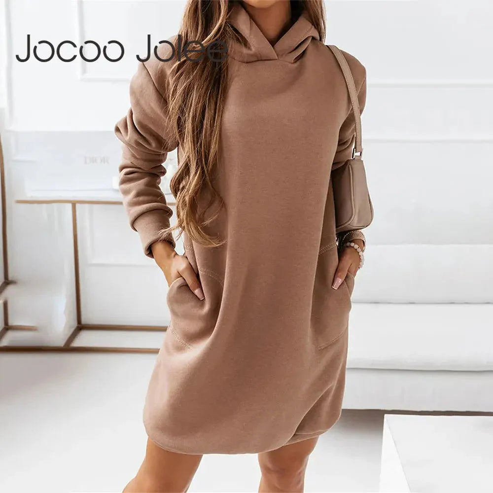 Mit Kapuzenausschnitt, langen Ärmeln und schicken Taschen ist jedes Detail durchdacht, um Wärme und Funktionalität zu bieten und sicherzustellen, dass dieses Kleid zu einer unverzichtbaren Ergänzung Ihrer Herbst- und Wintergarderobe wird.
