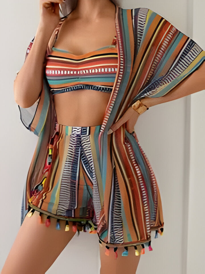 Ivie | Sexy bedruckter dreiteiliger Badeanzug für Frauen
