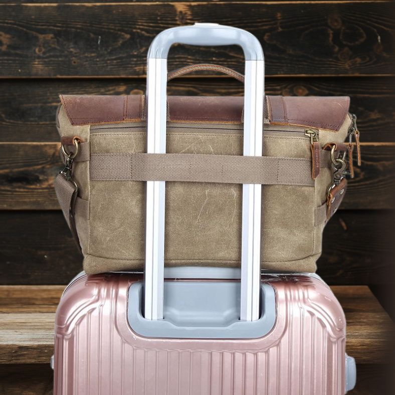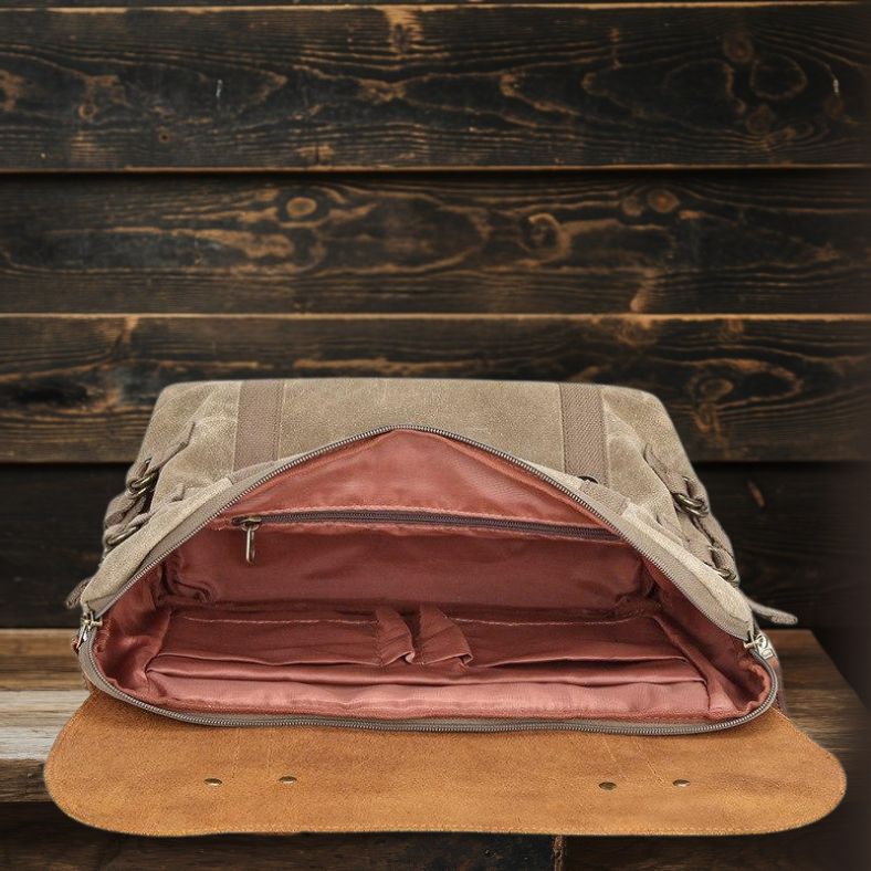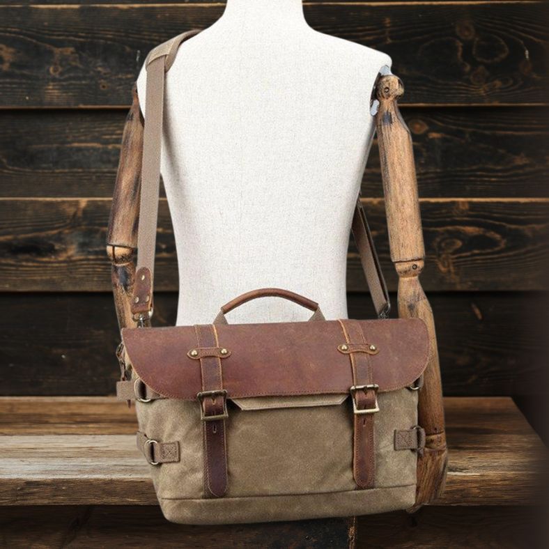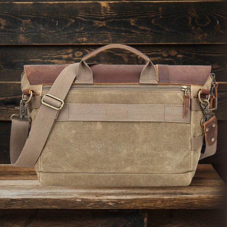 Die Tallin bietet viele Staufächer sowie eine speziell gepolsterte Tasche mit Klettverschluss und verstellbaren Trennwänden, um Ihr Fotozubehör (Objektivhüllen, Kameragehäuse, Ladegeräte, Speicherkarten, GoPro) sicher unterzubringen. Zudem ist diese Canvas-Aktentasche aus hochwertigem Leder und strapazierfähigem gewachstem Baumwoll-Canvas gefertigt, wodurch sie komplett verschleiß- und wetterbeständig ist!