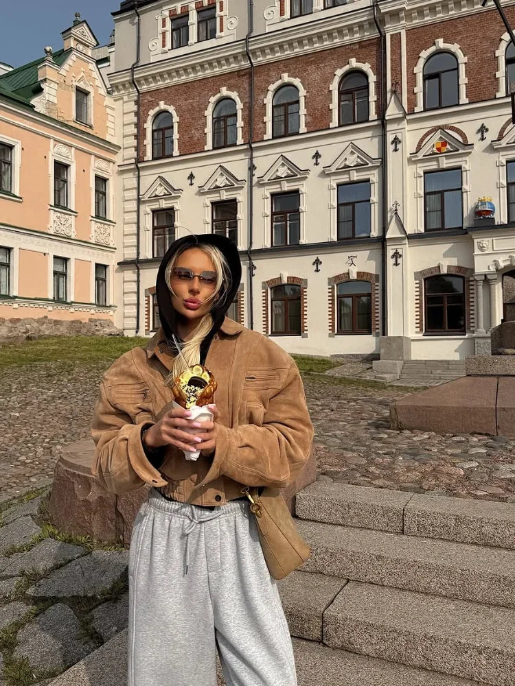 Diese camel farbene suede jacke vereint eleganz mit modernem streetstyle und ist die perfekte wahl für modebewusste frauen. die lockere passform und die kurze länge sorgen für komfort, während der umgeschlagene kragen und die dezente struktur einen stilvollen look kreieren. ob für alltag, city oder abendliche treffen – diese jacke verleiht jedem outfit einen edlen touch.