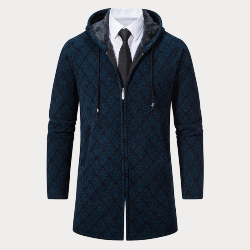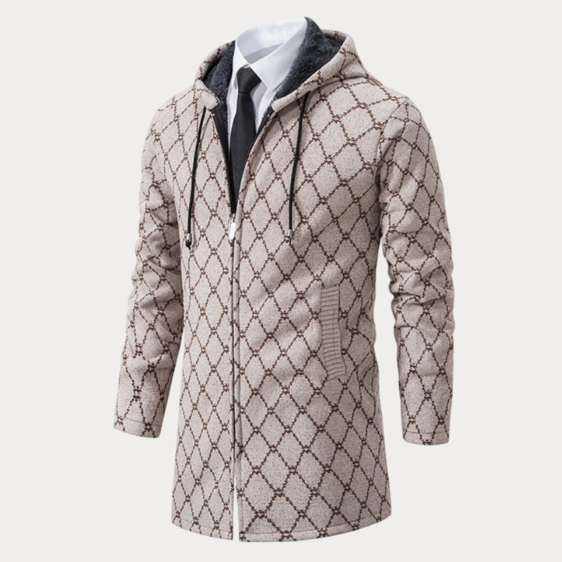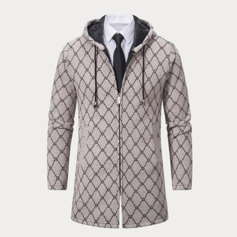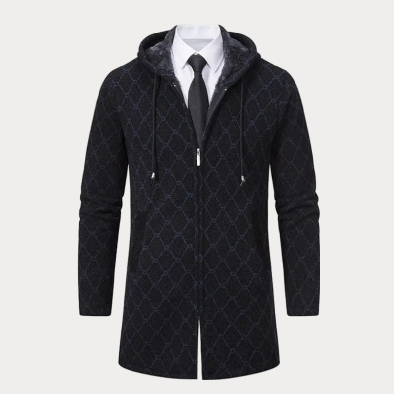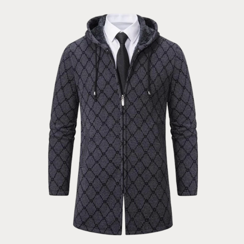 Langer Mantel mit Reißverschluss und Kapuze für Herren