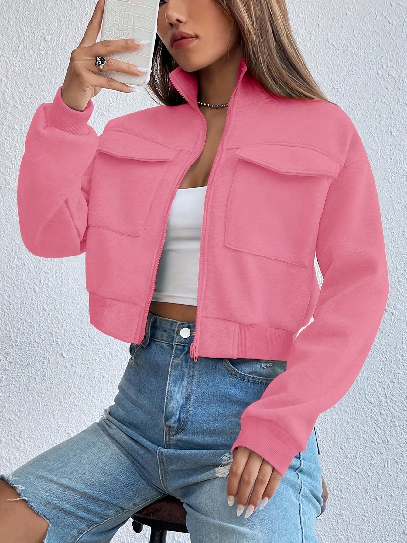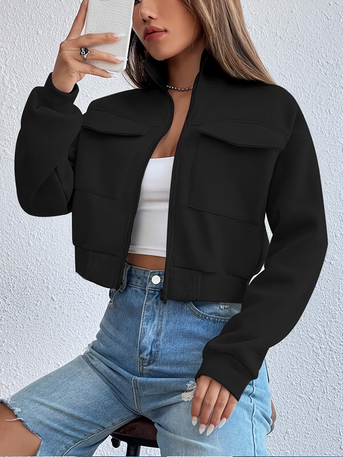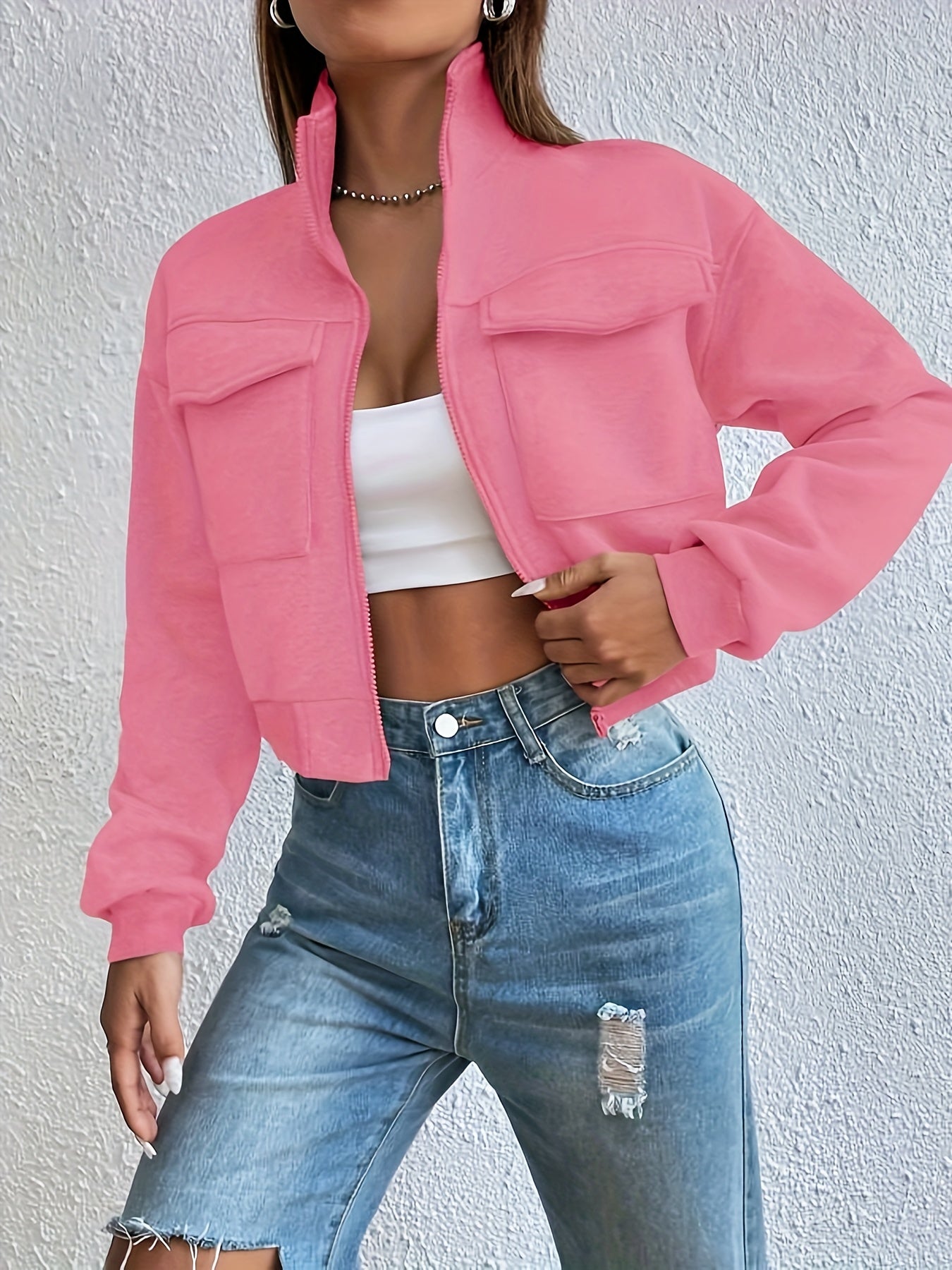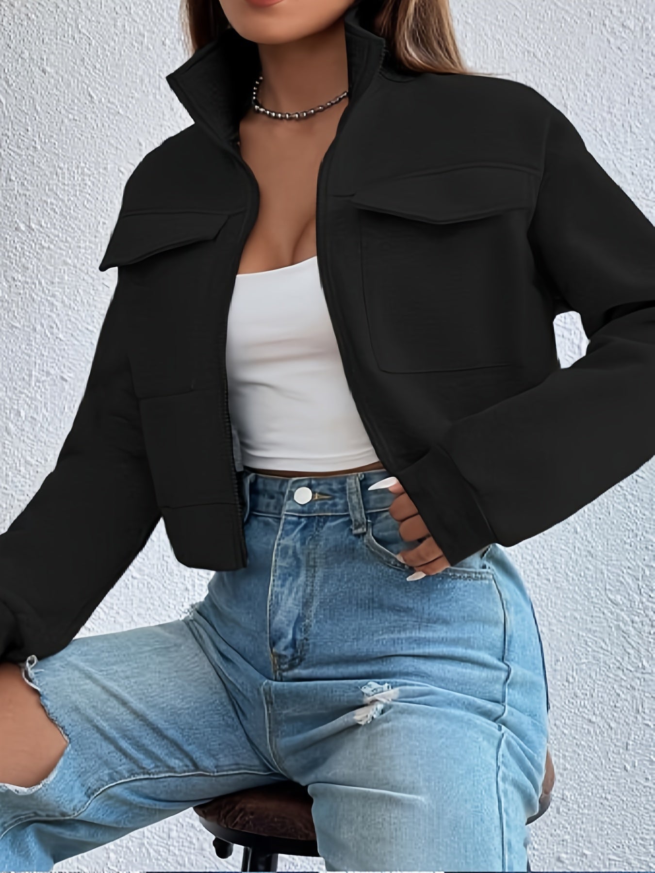 Stilvolles Crop-Design mit durchdachten Reißverschlüssen und praktischen Kleptaschen.