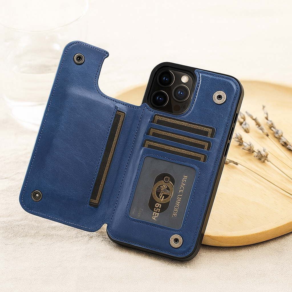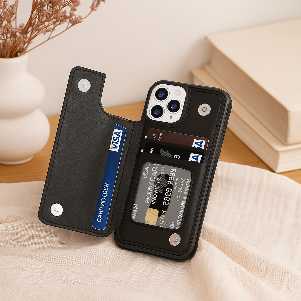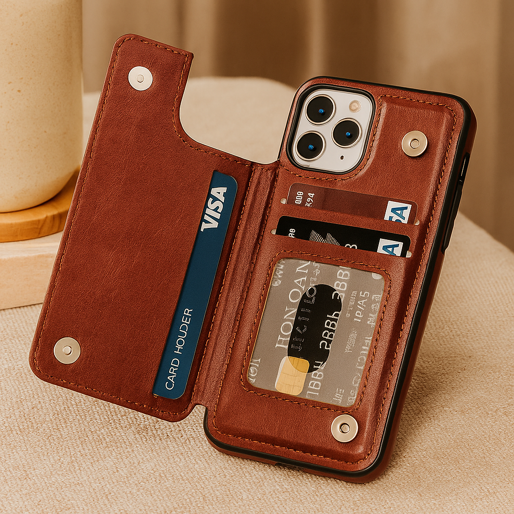 Rüsten Sie Ihr Telefon mit einem Etui auf, das Stil und Funktionalität kombiniert. LeatherGard | Luxuriöse Handyhülle aus Leder mit Kartenfächern und Magnetverschluss ist so konzipiert, dass es Ihrem Gerät den Schutz bietet, den es verdient – und gleichzeitig Ihre Karten sowie wichtigsten Wertsachen stets griffbereit hält.