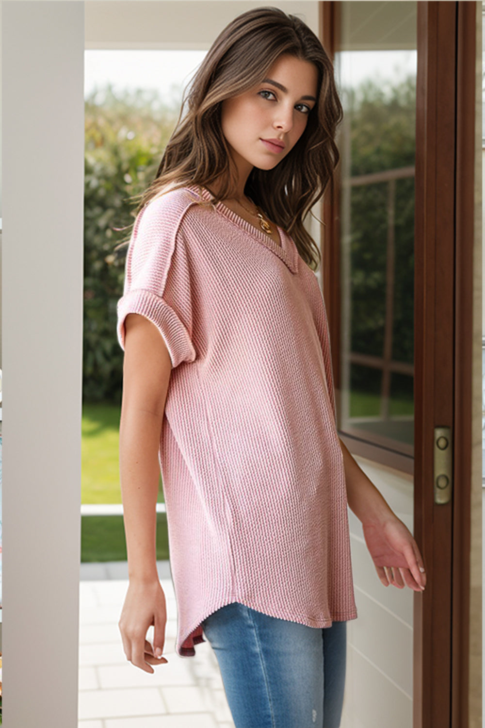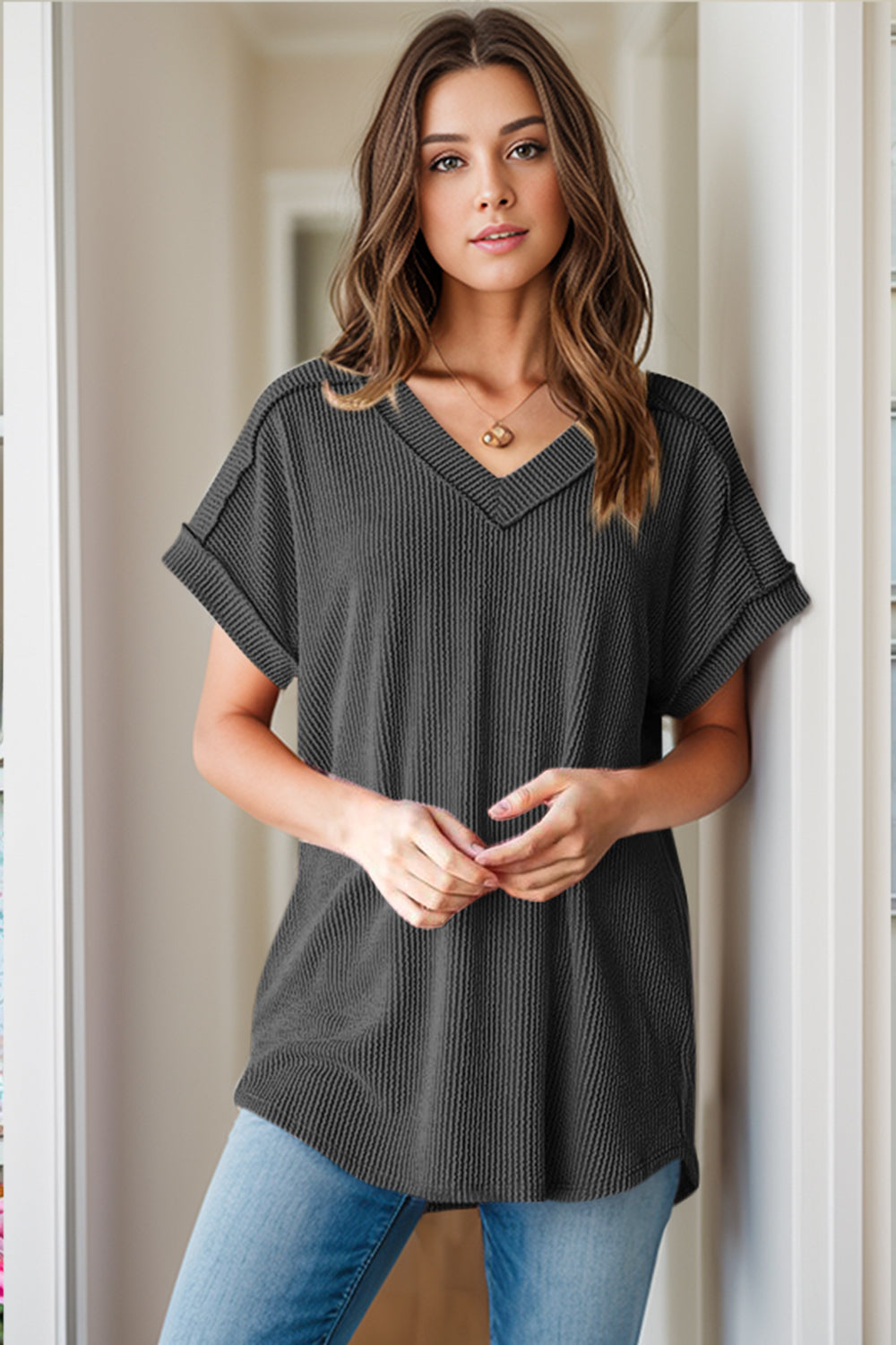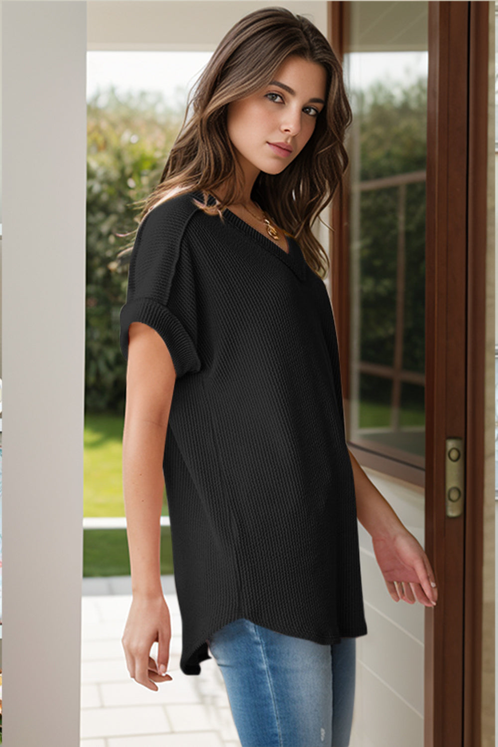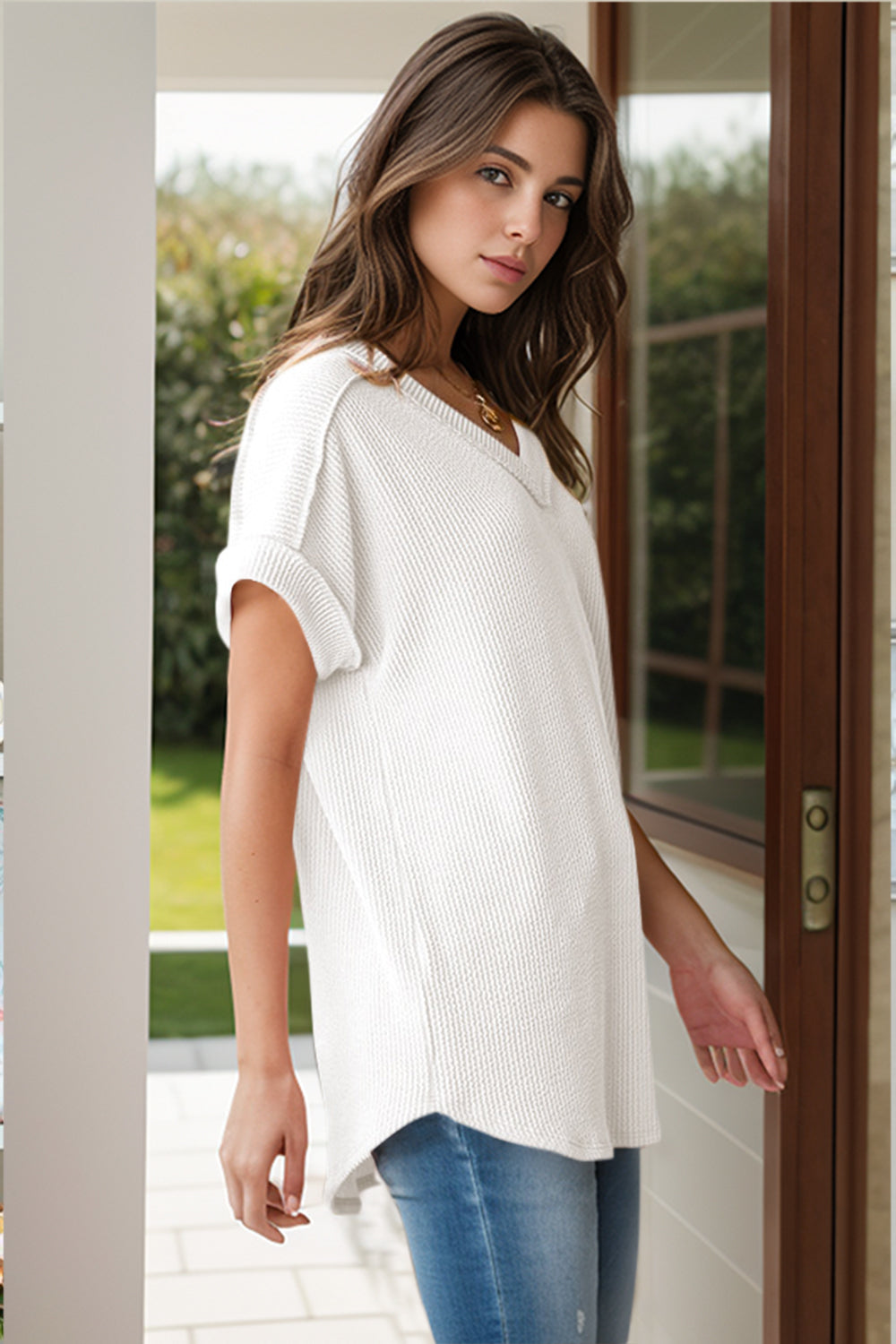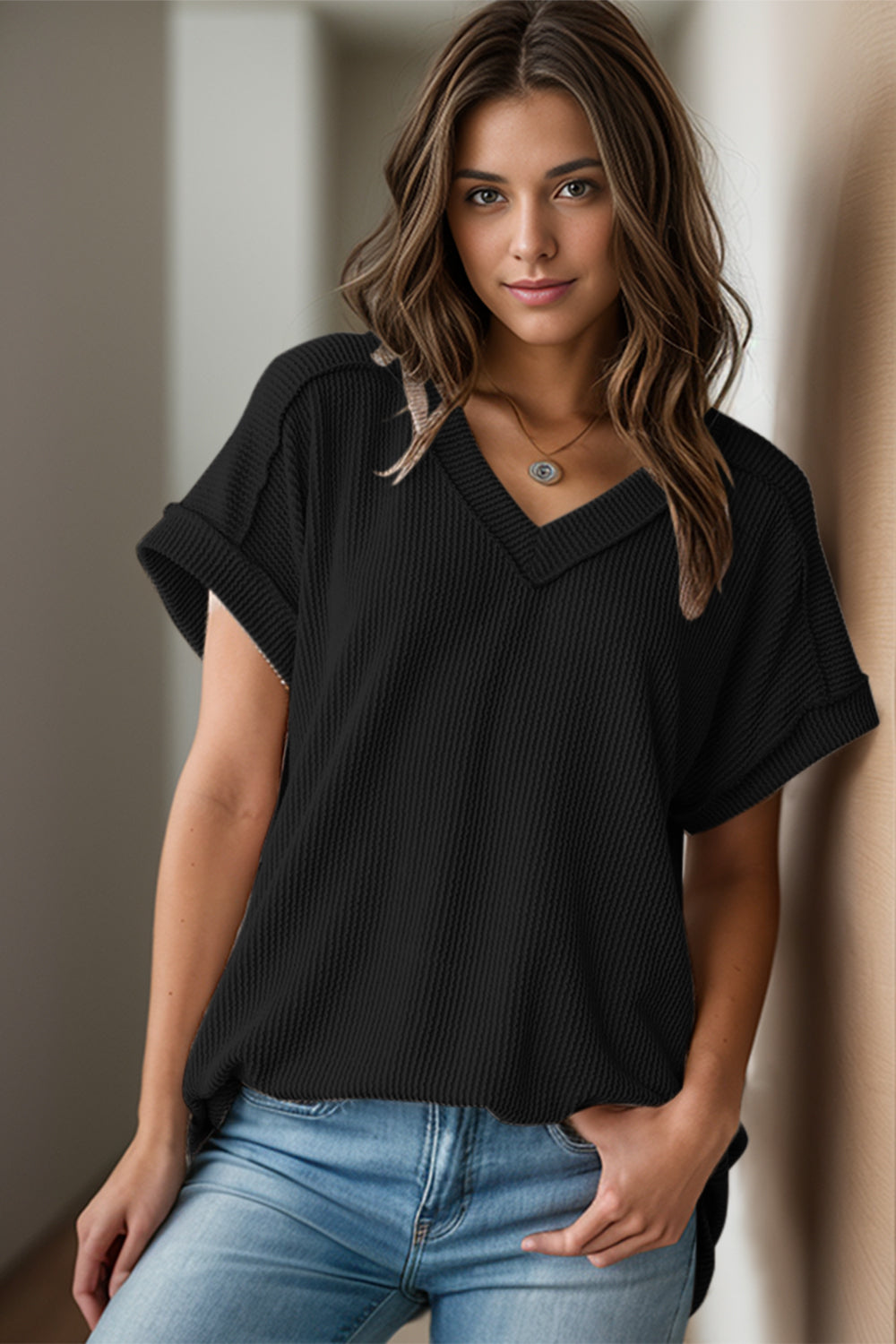 Lily® | Strukturierte Kurzarmbluse mit V-Ausschnitt