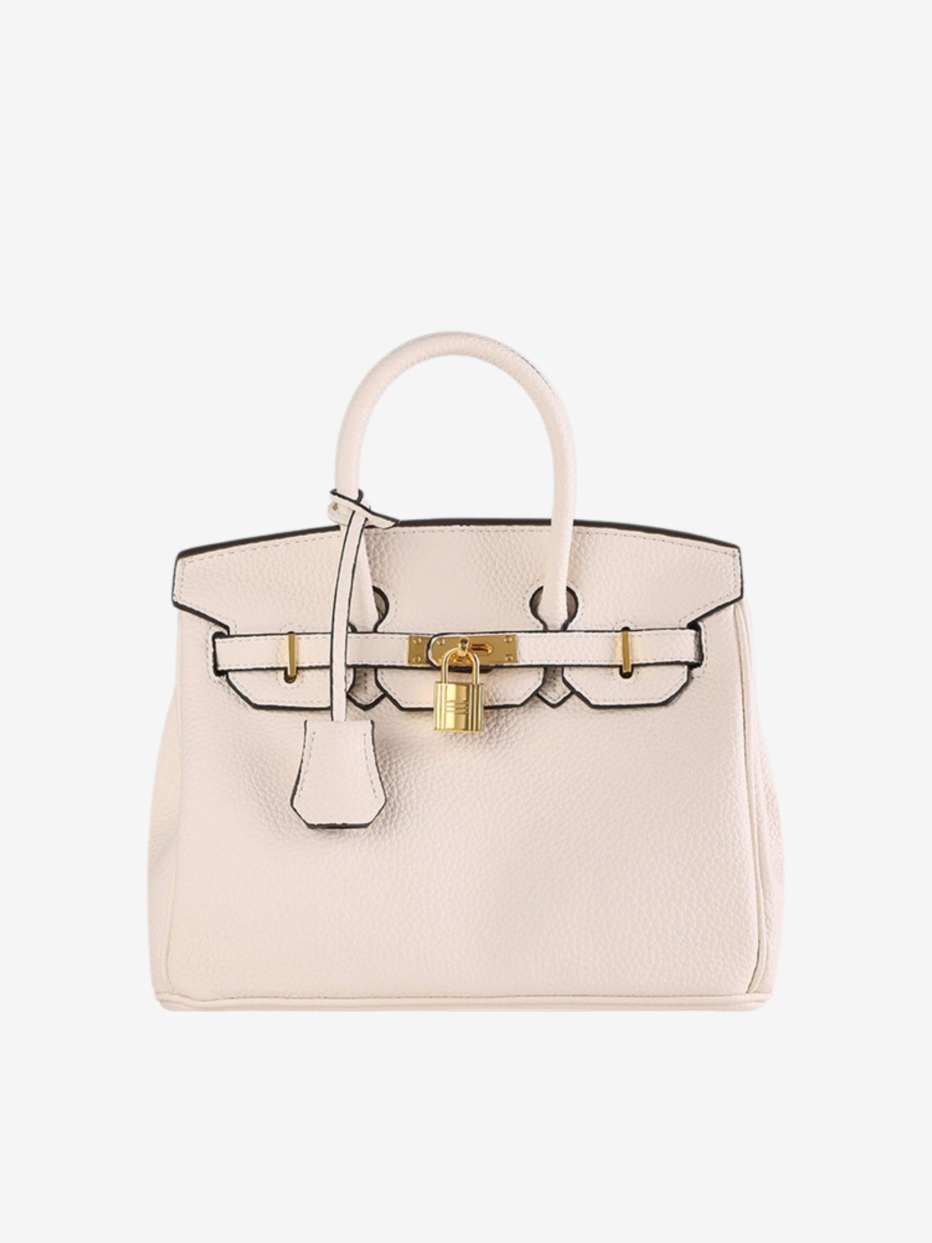 Die Liv™ Strukturierte Petite Lock Bag vereint klassische Raffinesse mit zeitgemäßem Flair. Gefertigt aus hochwertigem veganem Leder, besticht diese kompakte Handtasche durch elegante goldfarbene Details und ein auffälliges Schloss, das jedes Outfit aufwertet. Ob als Crossbody mit dem abnehmbaren Riemen oder stilvoll in der Hand getragen – deine Essentials bleiben sicher verstaut, während dein Stil immer perfekt zur Geltung kommt.