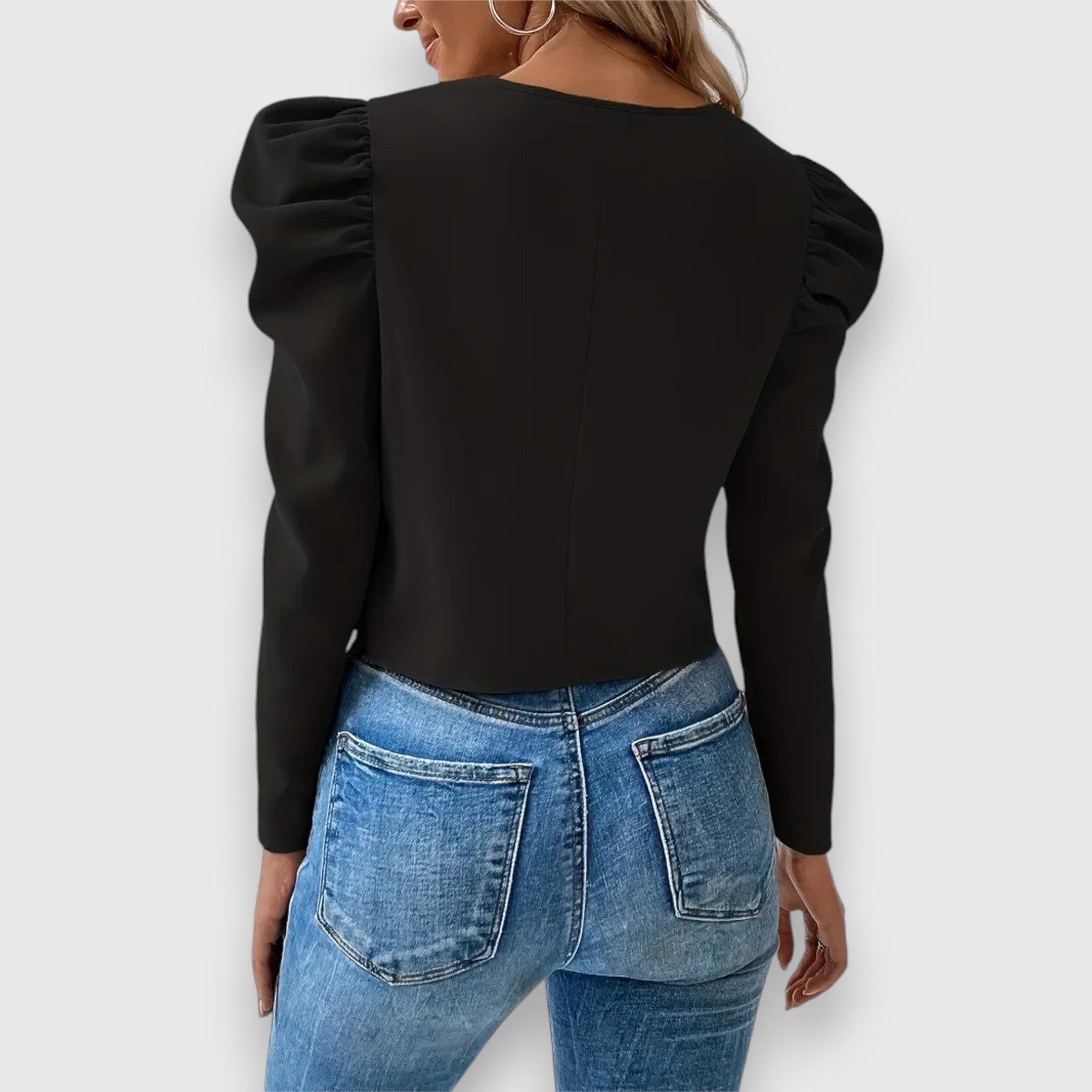 Die Lucia-Kurzjacke überzeugt mit ihrem schlichten, aber edlen Design. Die modernen Puffärmel verleihen ihr eine feminine Note, während der Reißverschluss für eine praktische und vielseitige Tragemöglichkeit sorgt. Perfekt für stilvolle Outfits zu jeder Gelegenheit.