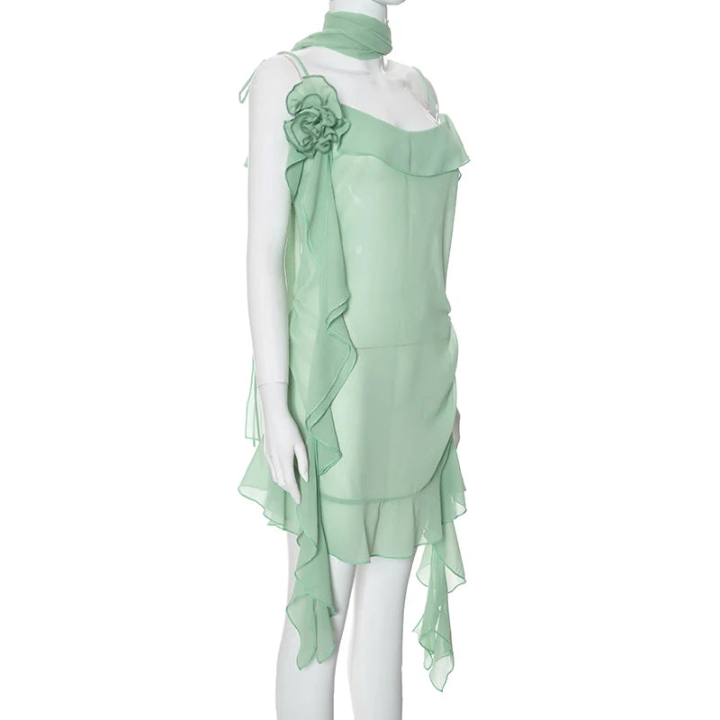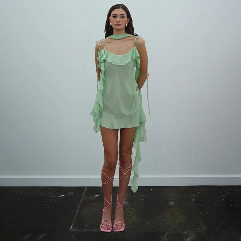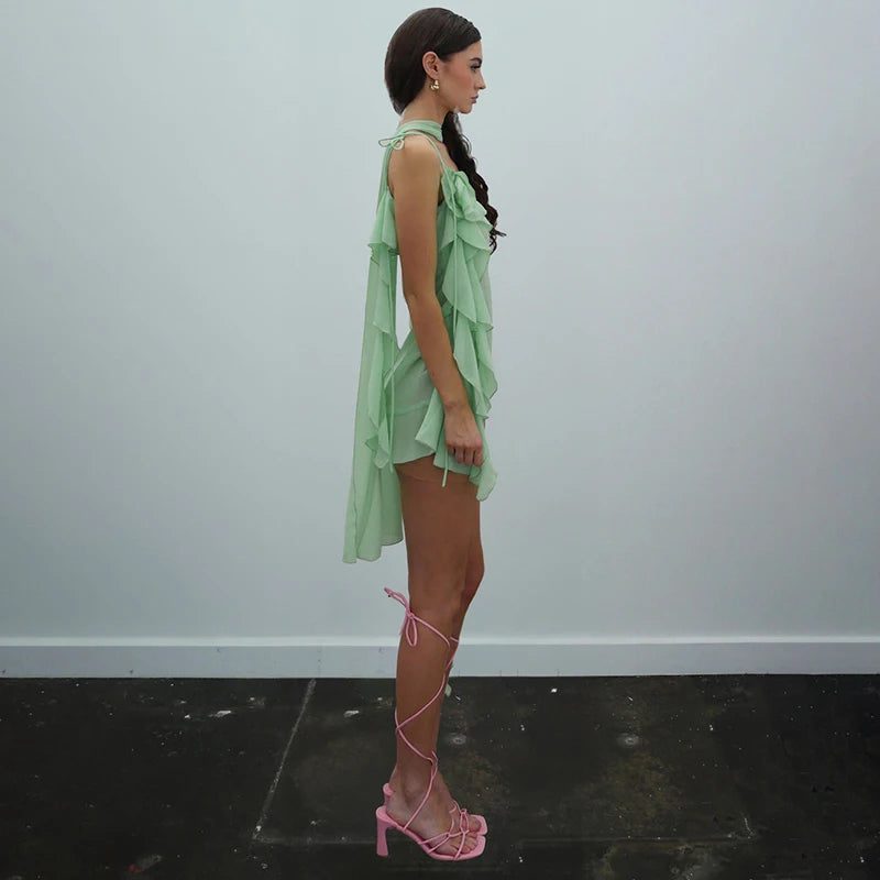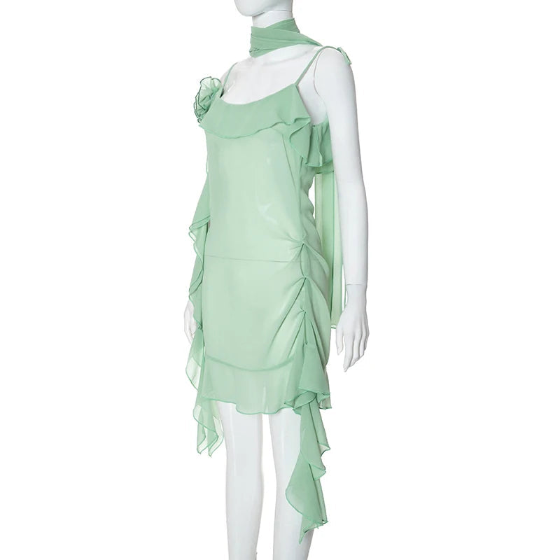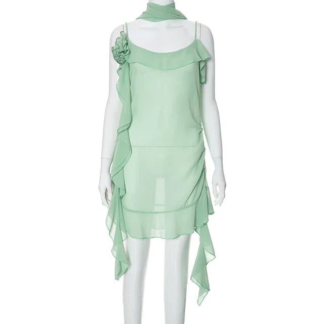 Luftiges, Elegantes Minzkleid mit Rüschenschichten