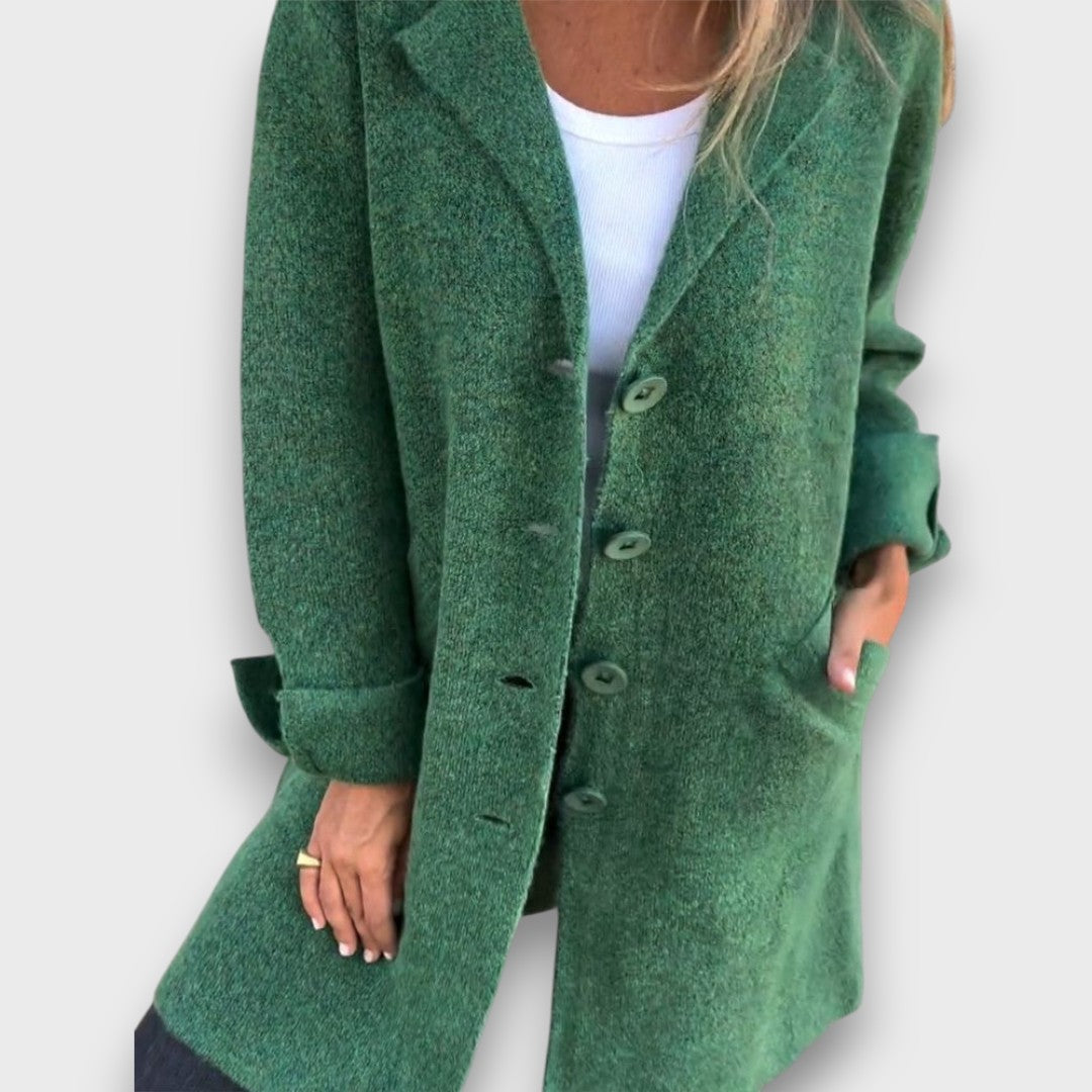 Ein Mantel, der dich sofort in eine entspannte Eleganz hüllt. Sein lockerer Schnitt und die weiche Textur sorgen für Komfort, während der klassische Reverskragen dem Design eine zeitlose Note verleiht. Ob in kräftigem Grün, zartem Rosa, dezentem Grau oder warmem Beige – dieser Mantel passt sich mühelos deinem Stil und Alltag an.