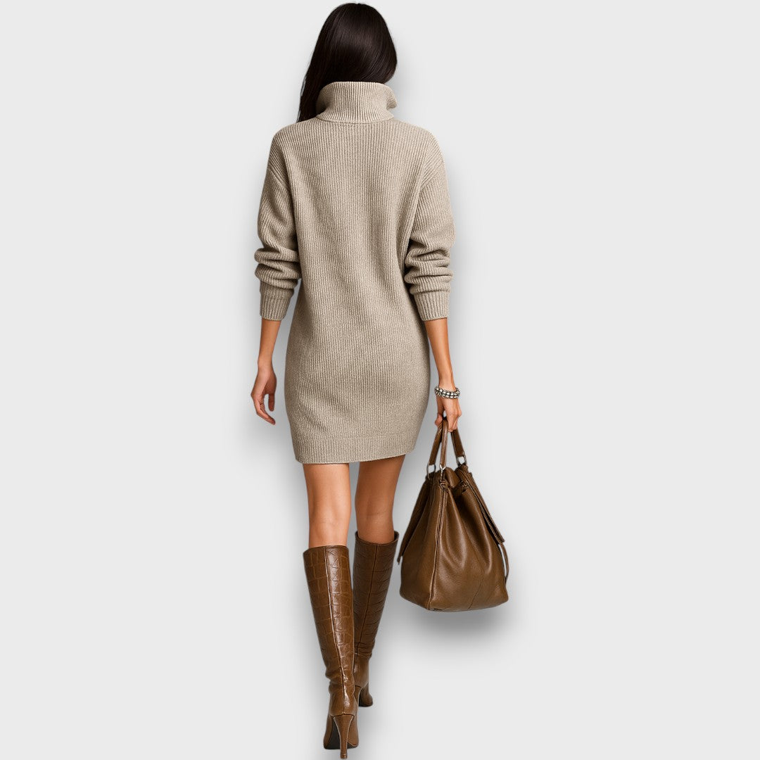 Ein Kleid, das Komfort und Stil auf elegante Weise vereint: Das weiche Strickmaterial schmiegt sich sanft an die Haut, während der lockere Schnitt mit V-Ausschnitt und Kragen eine lässig-feminine Note verleiht. Ob mit hohen Stiefeln oder dezenten Flats – dieses Kleid passt sich deinem Alltag und deinen besonderen Momenten an.